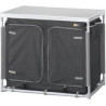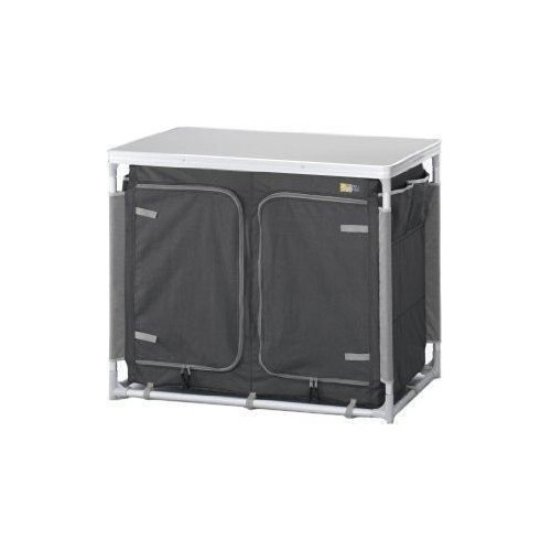 Nicht genug Stauraum? Kein Problem für diese stabile Campingküche mit 6 Fächern. Oberfläche und Böden sind mit Aluminiumrahmen versehen, 4 verstellbare Füße und seitliche Aufbewahrungsfächer. Farbe Grau