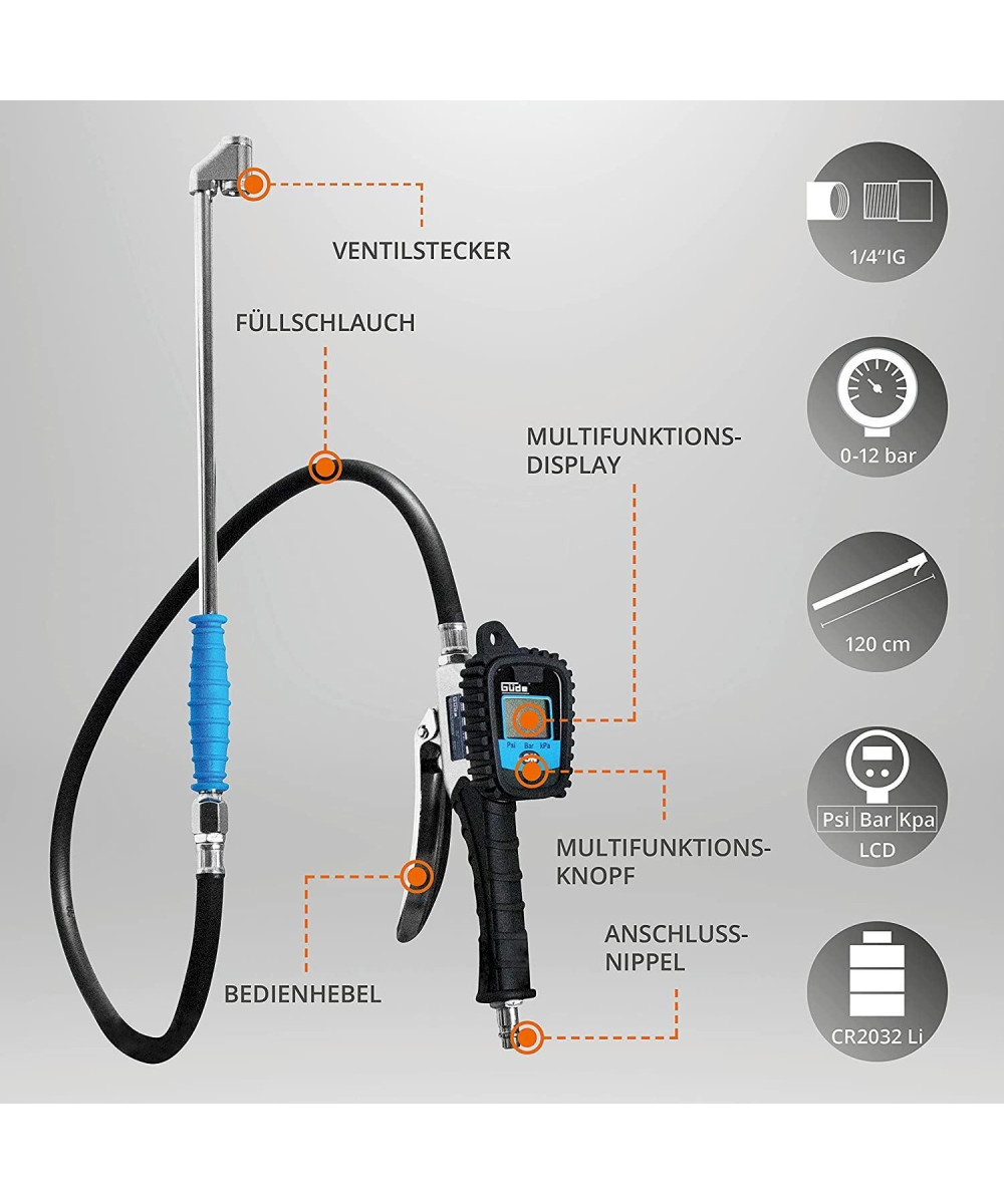 Professioneller Reifenfüller mit digitalem Display & Gummimanschette