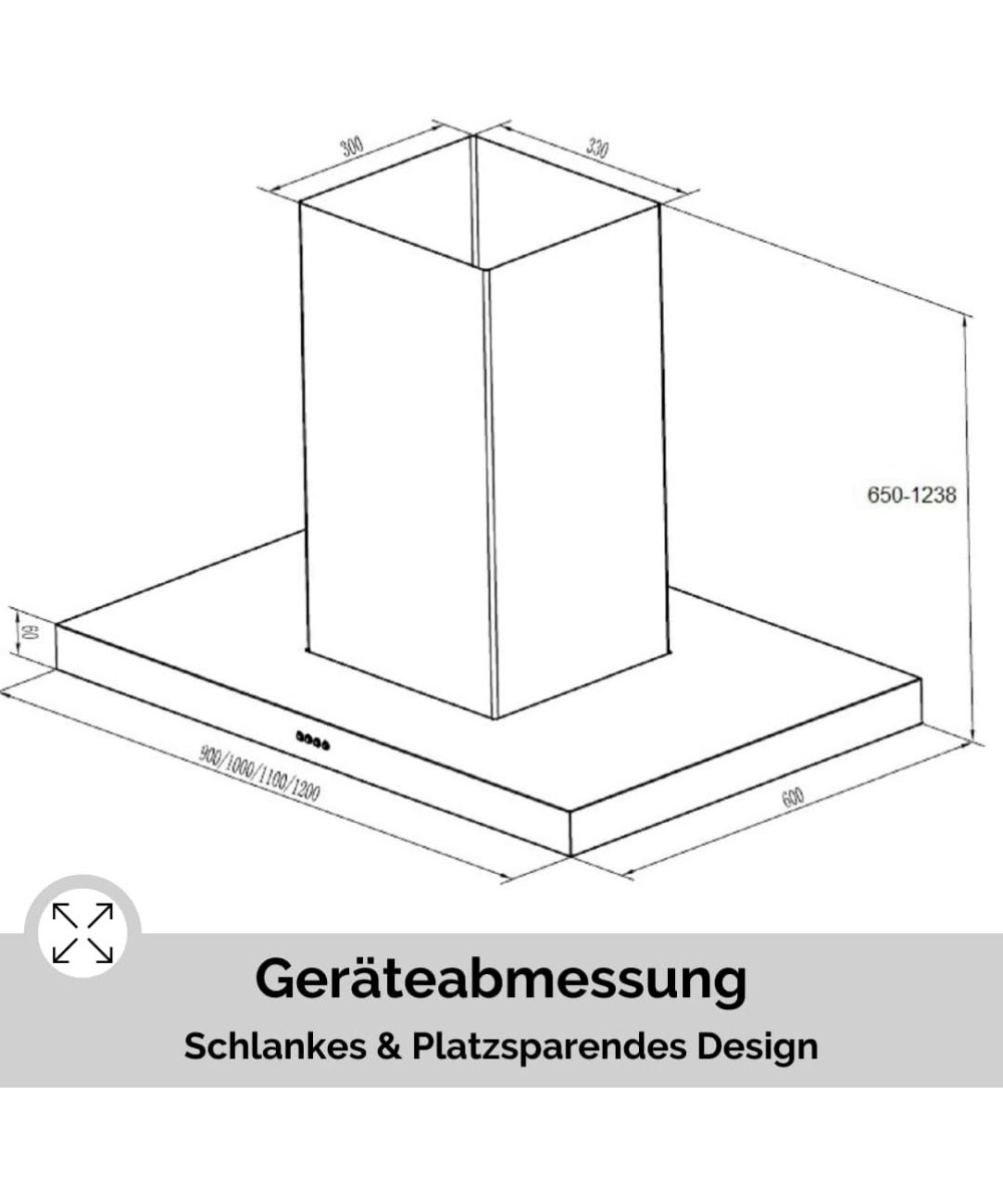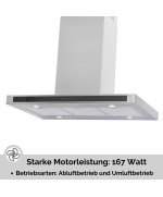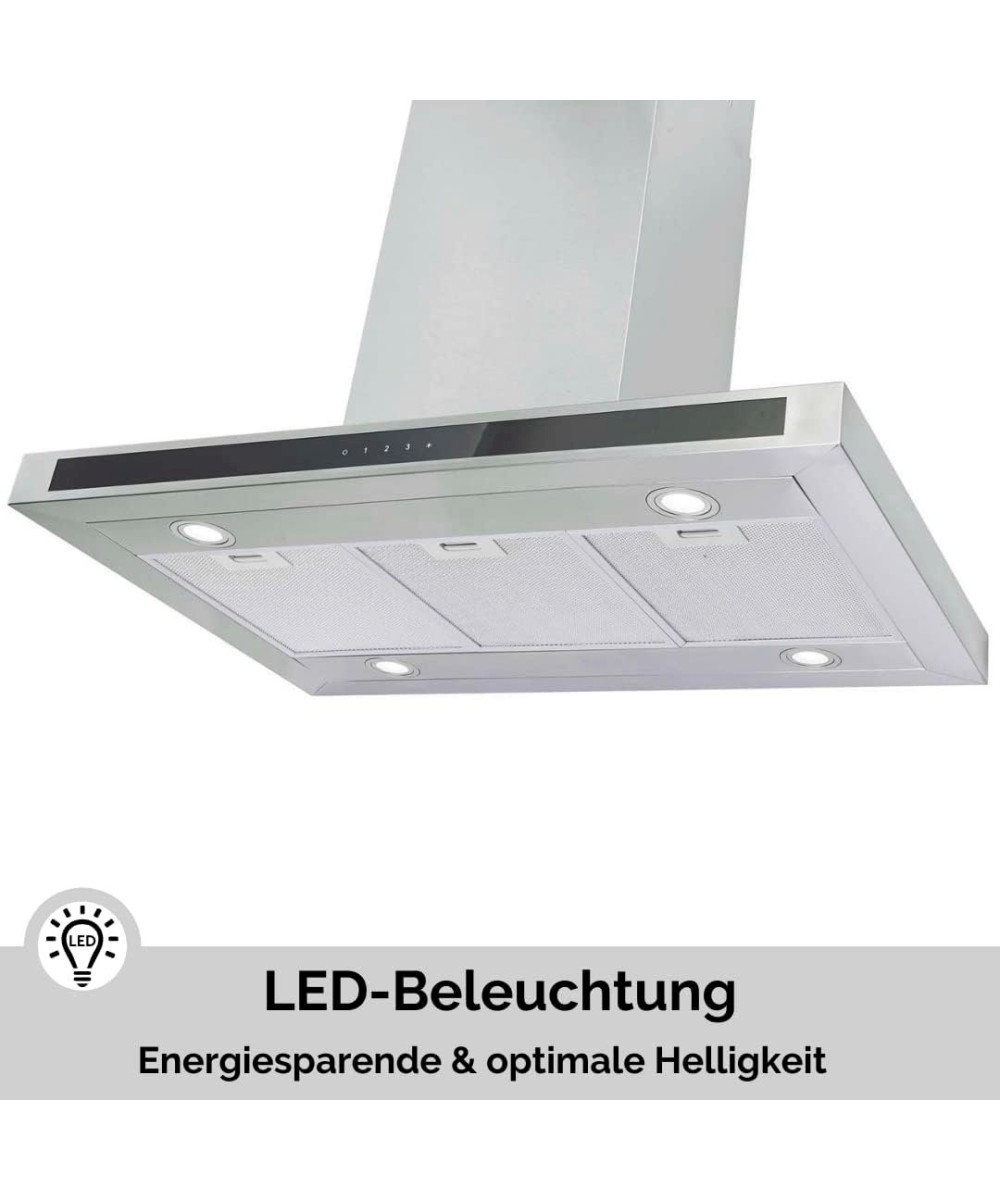PKM 8099GISZ Inselhaube Edelstahl 90cm Dunstabzugshaube mit Glasfront 613m³/h