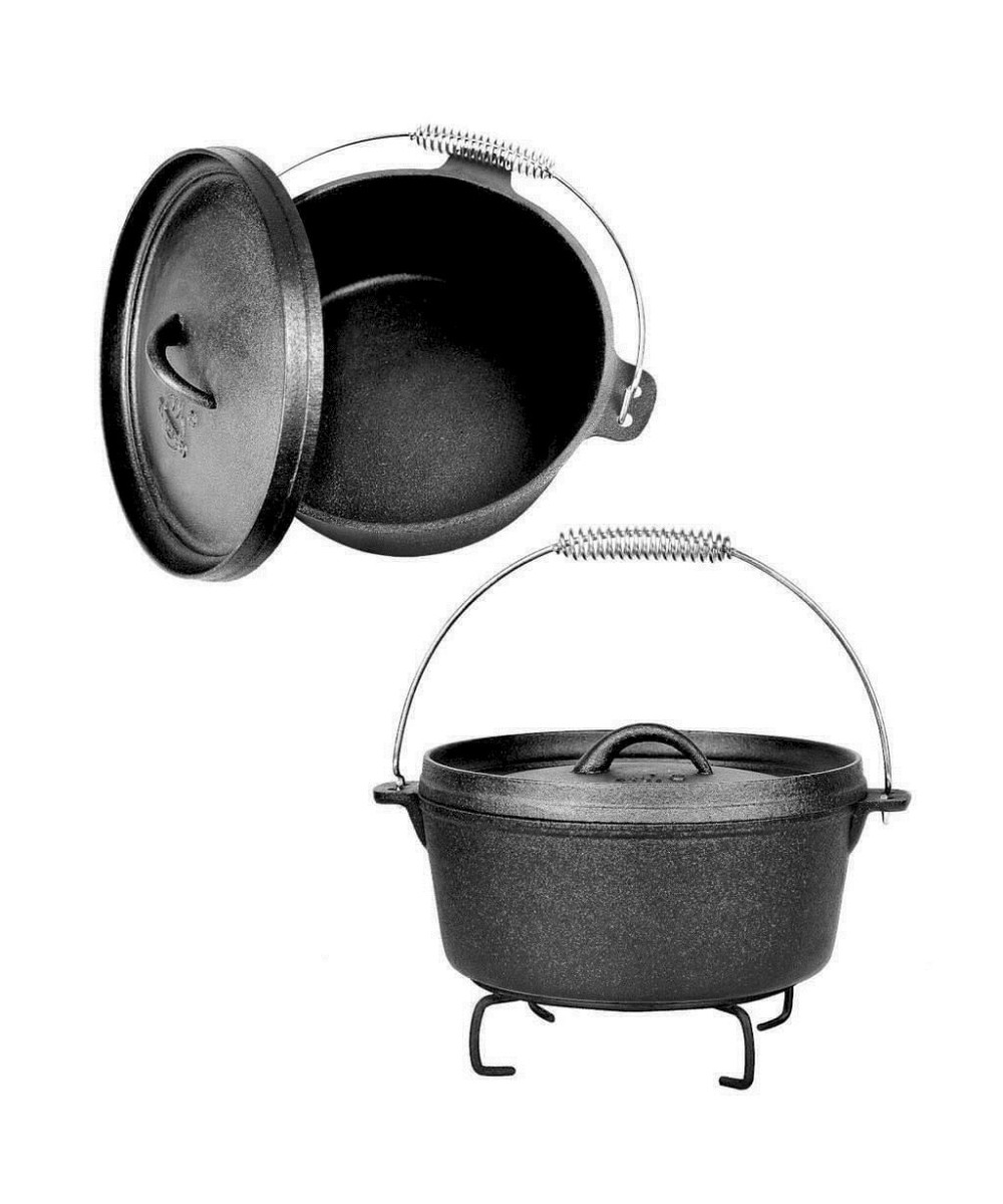 Kochen auf die klassische Art! Mit diesem „dutch oven“ in äußerst robuster Ausführung aus 100% massivem Gusseisen können Sie auf traditionelle Weise verschiedenste Speisen zubereiten – Geschmack „wie früher“ inklusive!