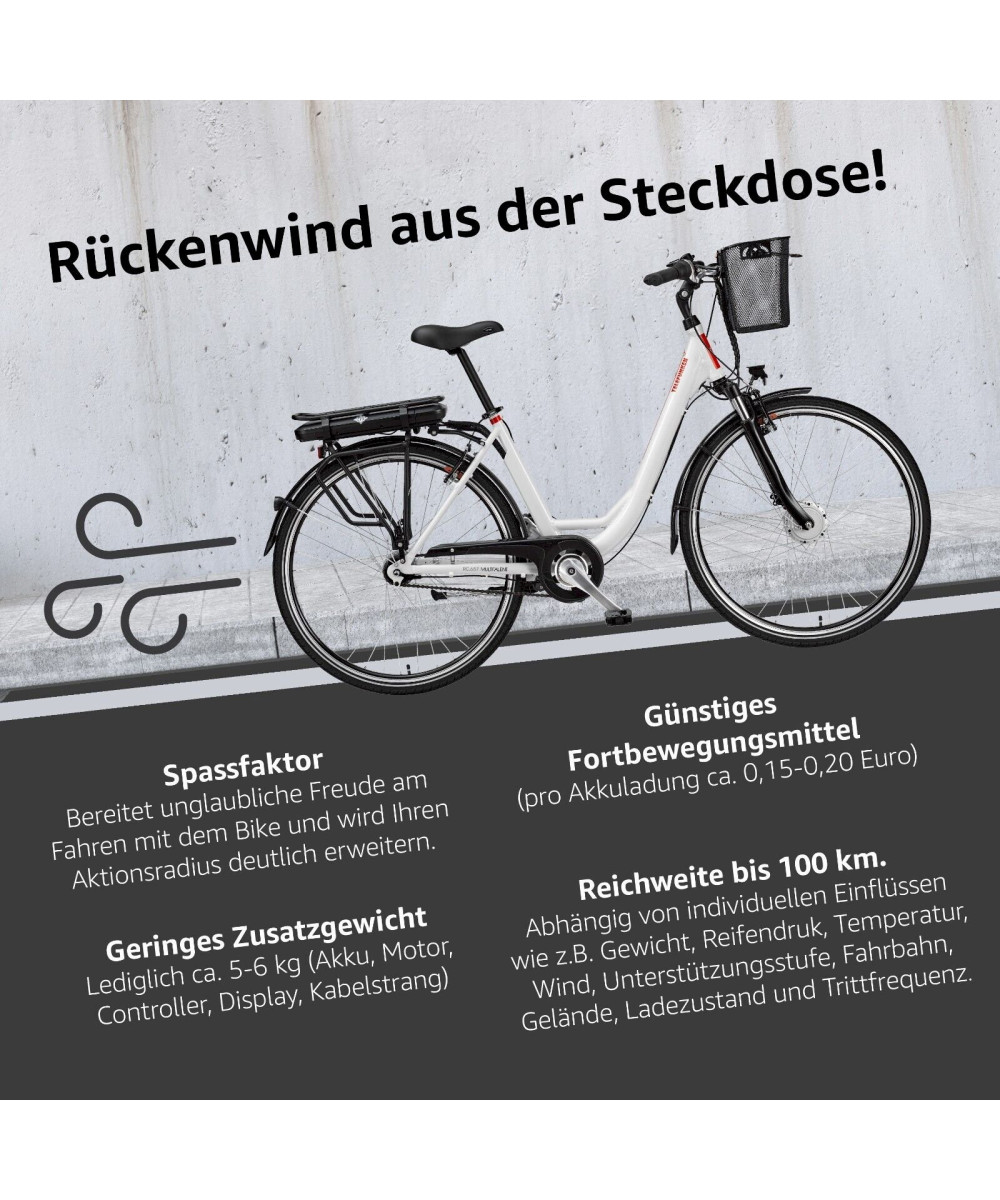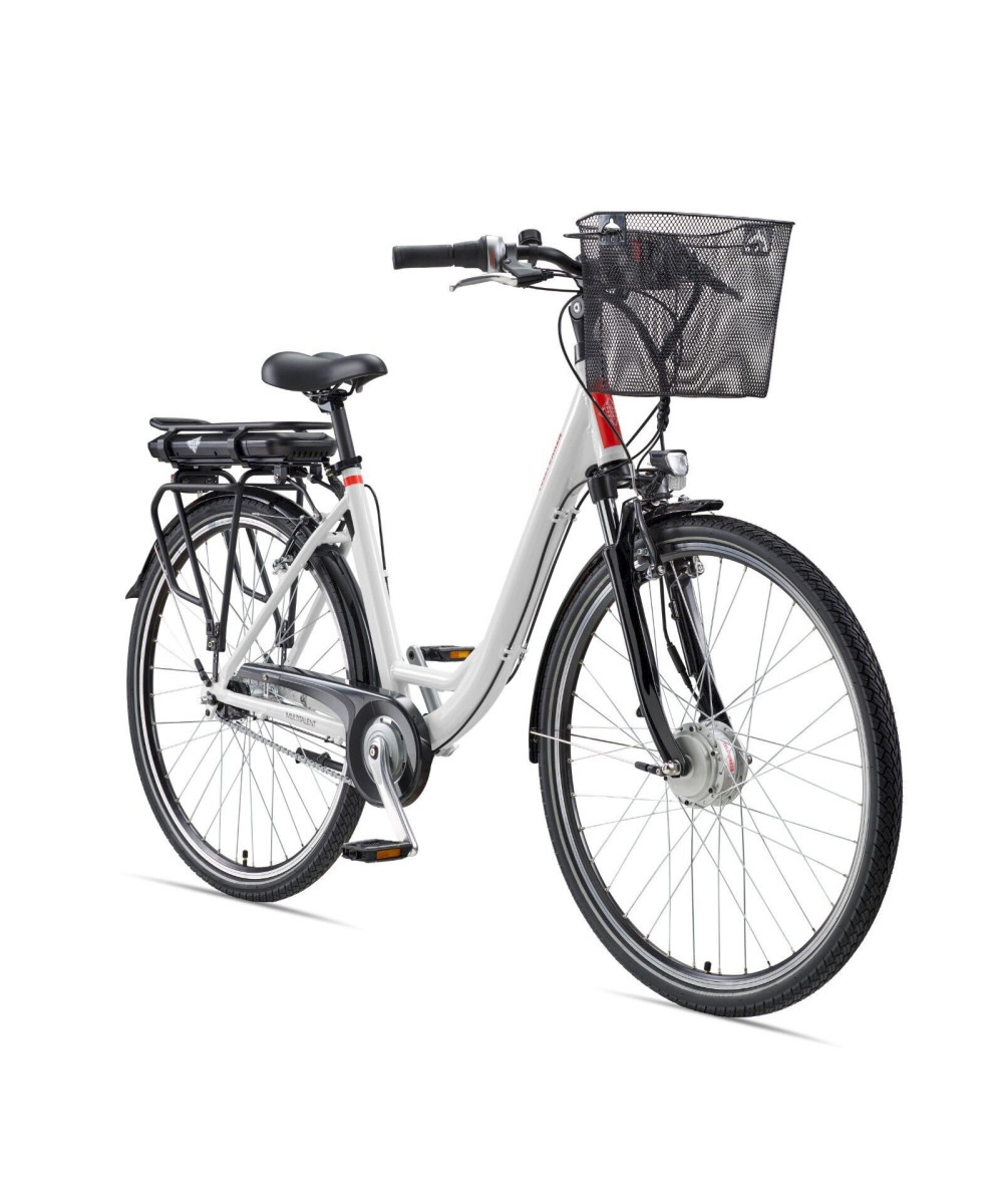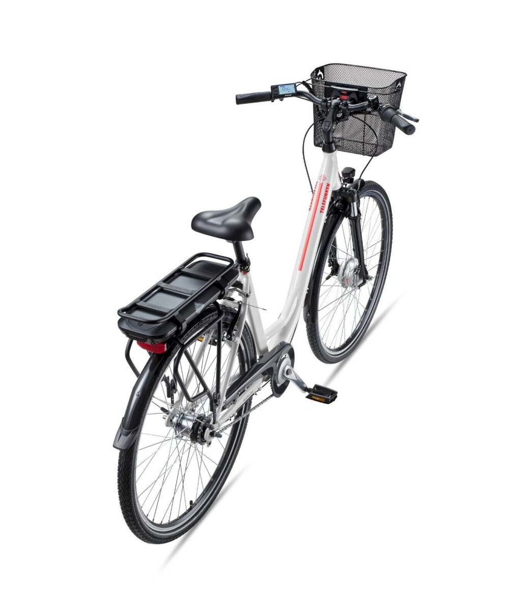 Das E-Bike von Telefunken ist gemacht für den Einsatz in der Stadt. Der starke 250 Watt/36 V Motor unterstützt dabei auch eine längere Tour oder hilft bei Anstiegen. Angetrieben wird der wartungsfreie Motor des City E-Bikes von einem 36 V/13 Ah Lithium-Ionen-Akku, der im Gepäckträger integriert ist.