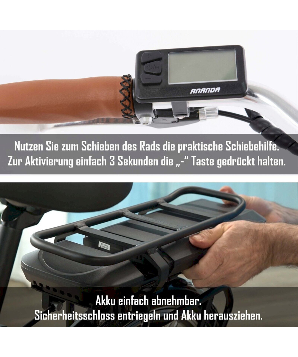 - Motor: Ananda Frontmotor 36 V/250 W/40 Nm