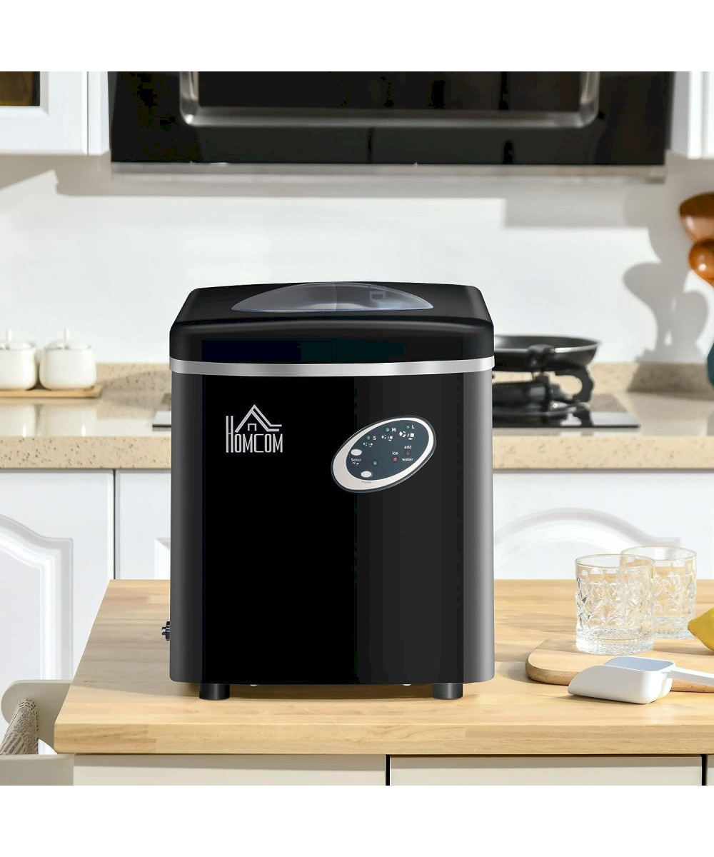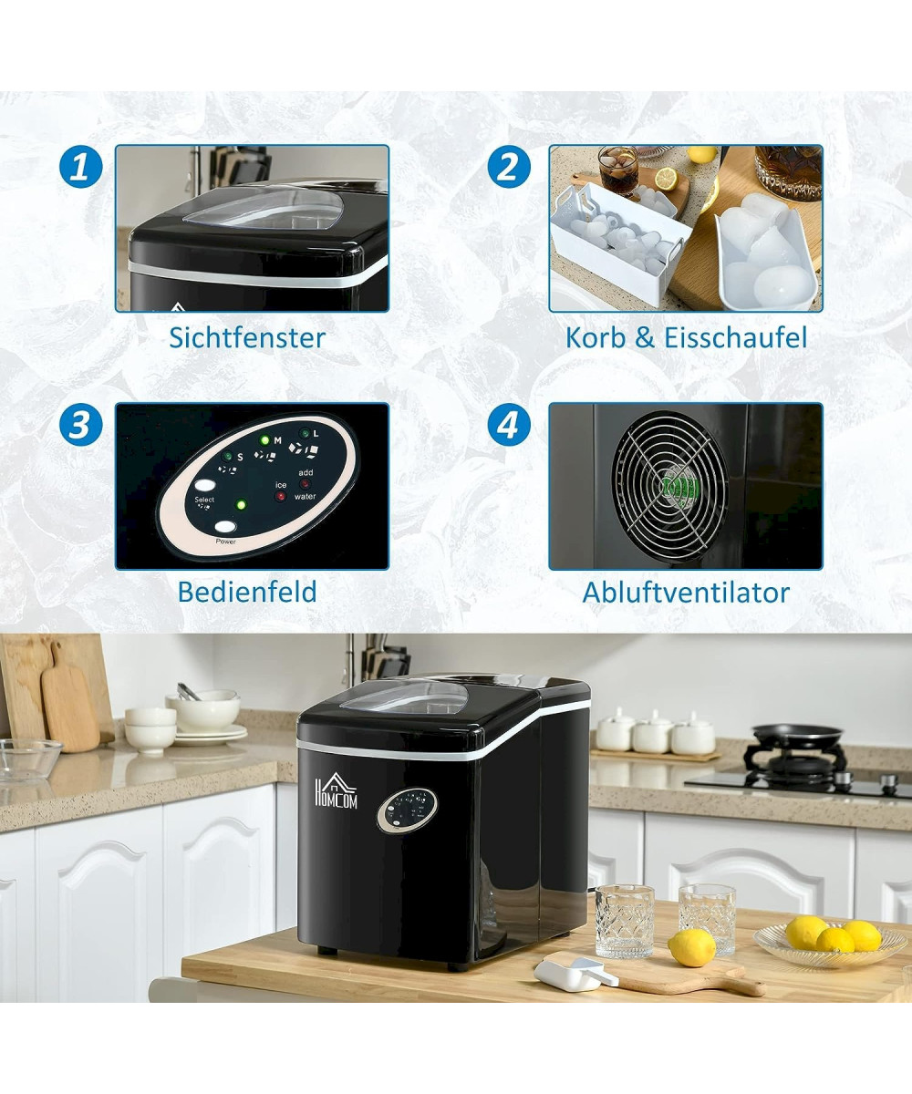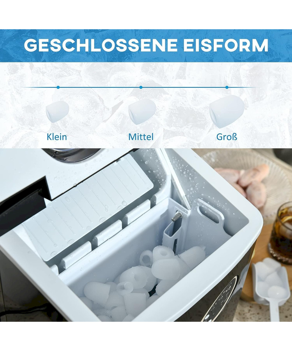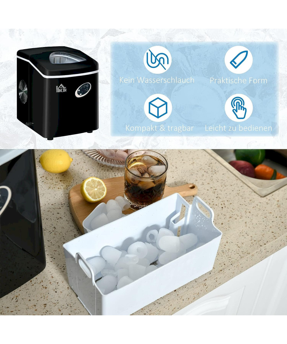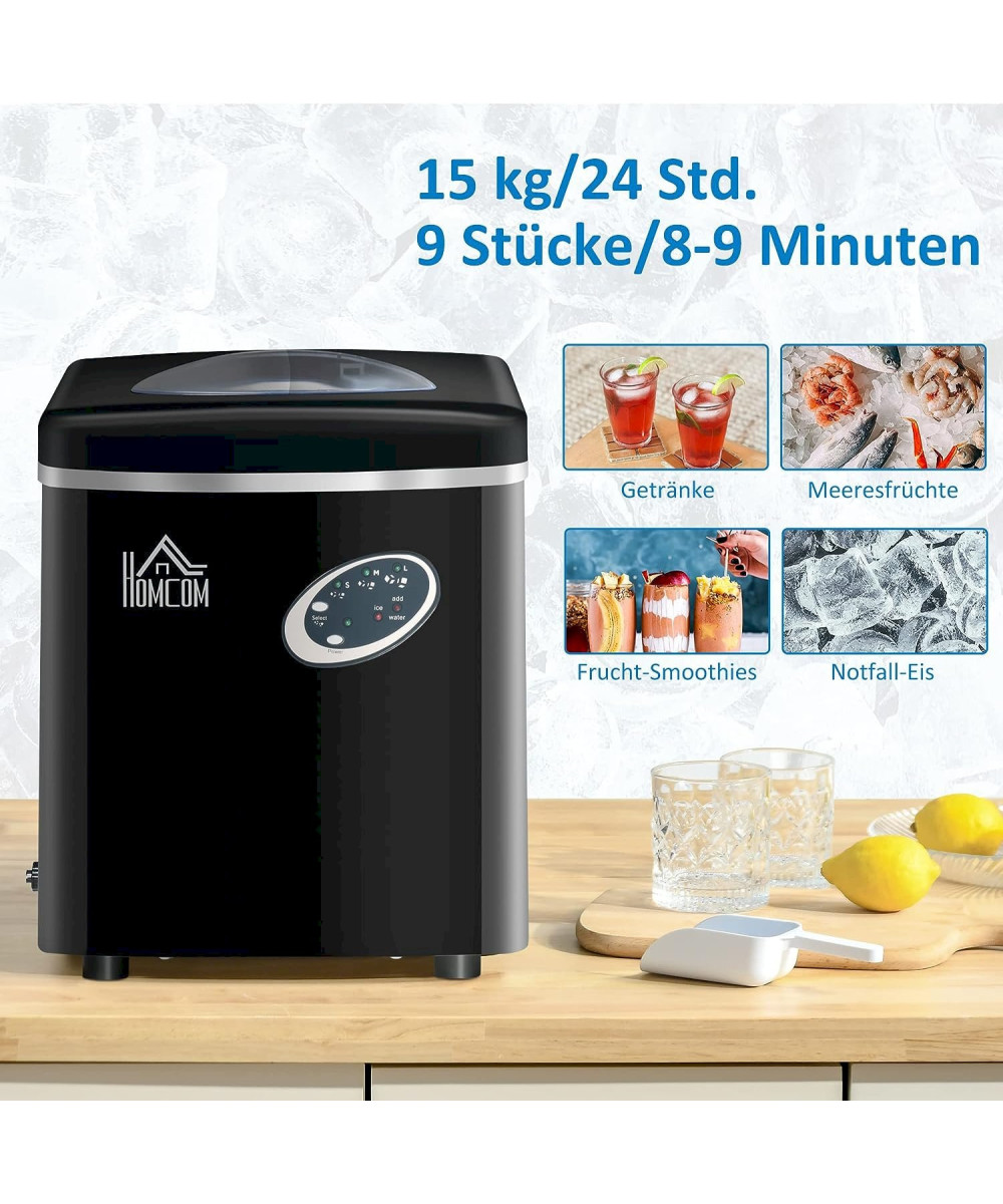 HOMCOM Eiswürfelmaschine 15kg/24h 1,9L Eiswürfelbereiter Schwarz + Silber