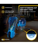 Kinder stecken voller Abenteuerlust und Entdeckergeist: Das Elektro-Drift-Trike von Actionbikes liefert genau dafür den perfekten Stoff! Spaßige Stunden und eindrucksvolle Tricks sind garantiert. Denn die speziellen 360°-Rollen am Trike ermöglichen rasante Drifts. Mit dem 250-Watt-Motor erreicht der Drift-Scooter eine Geschwindigkeit von bis zu 15 km/h. Aber keine Sorge – die Sicherheit Ihrer Sprösslinge haben Sie trotzdem stets im Blick: Denn mithilfe des Drosselschalters bestimmen Sie die Geschwindigkeit des Elektro-Drift-Trikes für Kinder. Und auch eine Hupe sowie eine Vorderbremse sind am Drift-Trike vorhanden. Dem sicheren Spaß steht also nichts mehr im Wege: Mit blinkenden LED-Rollen, leuchtender Front, peppiger Musik und auffälligem Design lässt der Elektro-Drift-Scooter Kinderherzen höherschlagen.