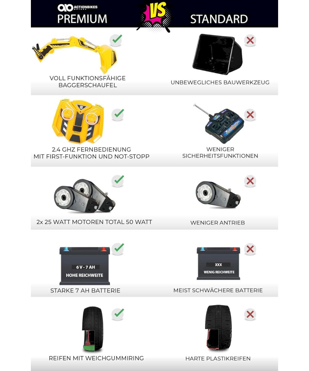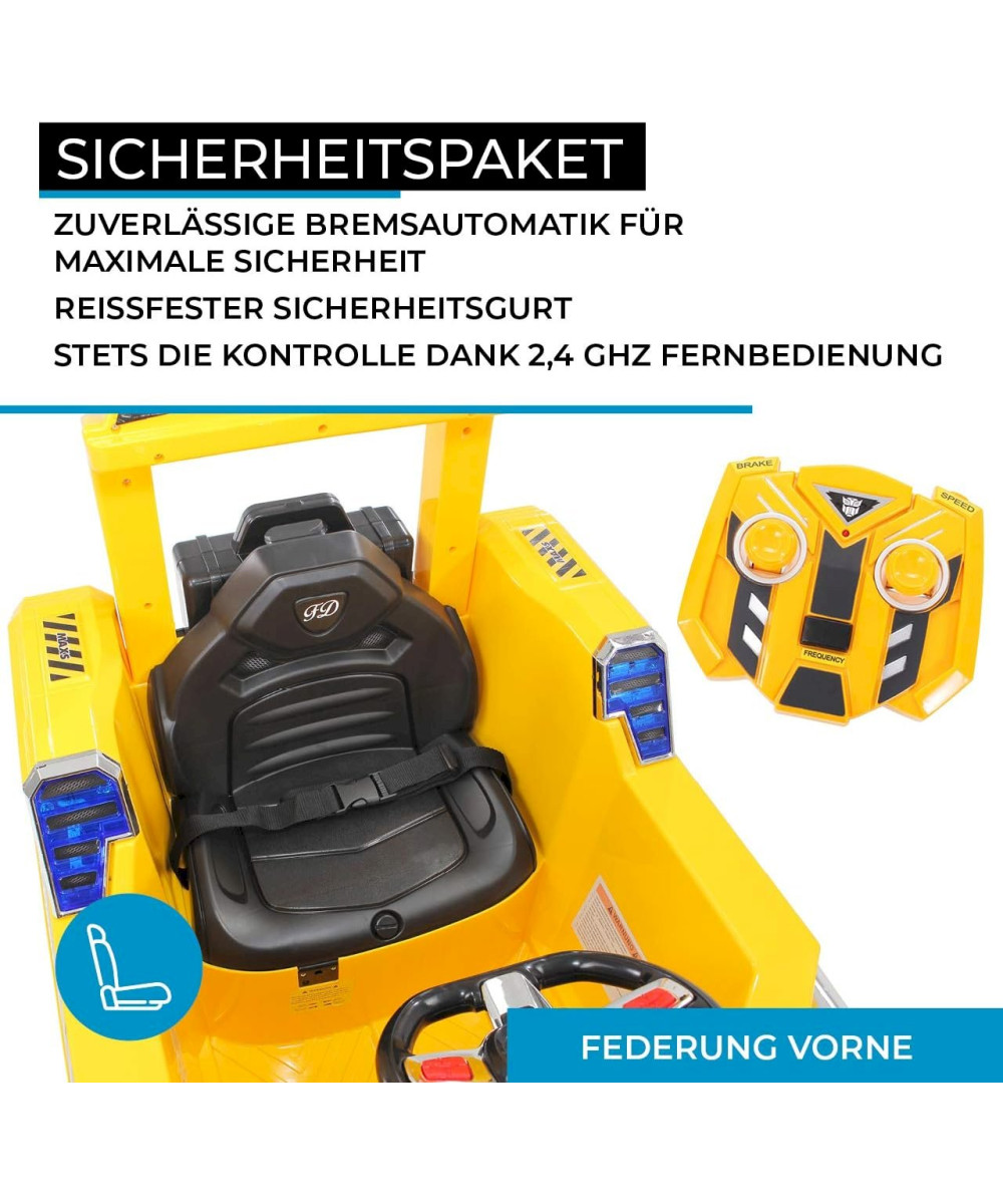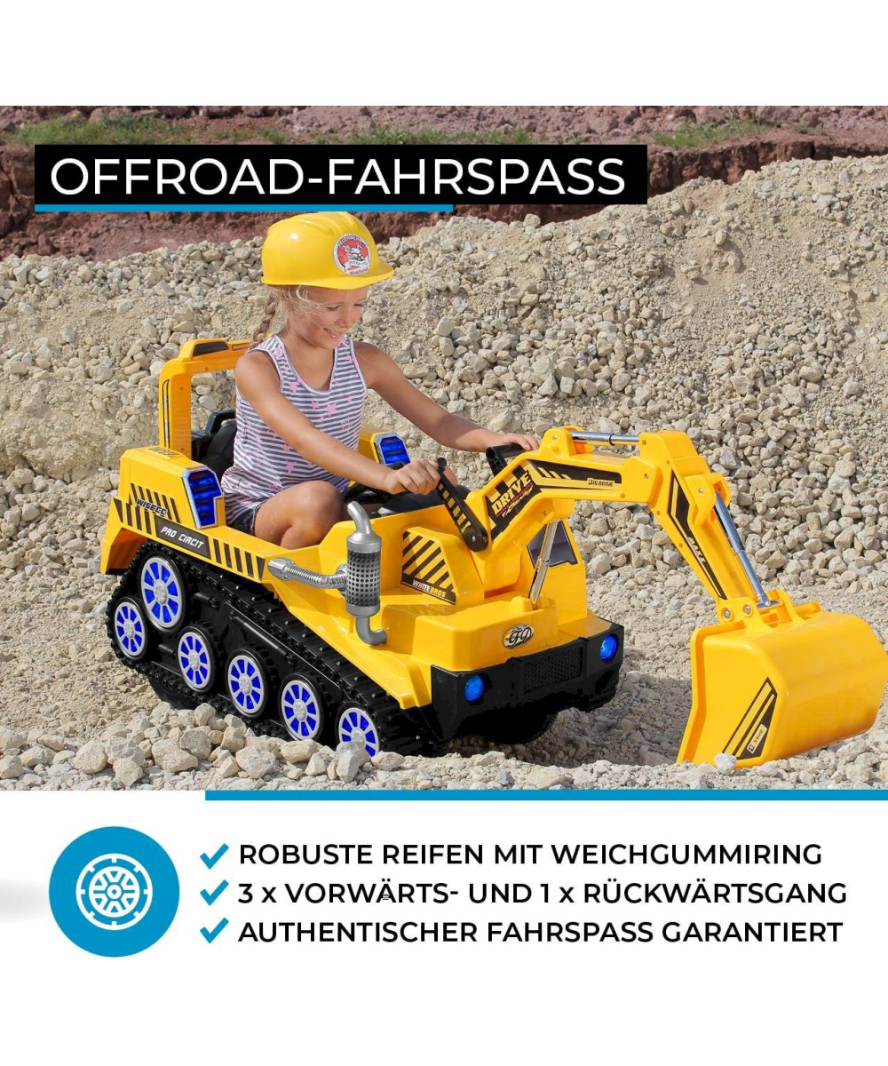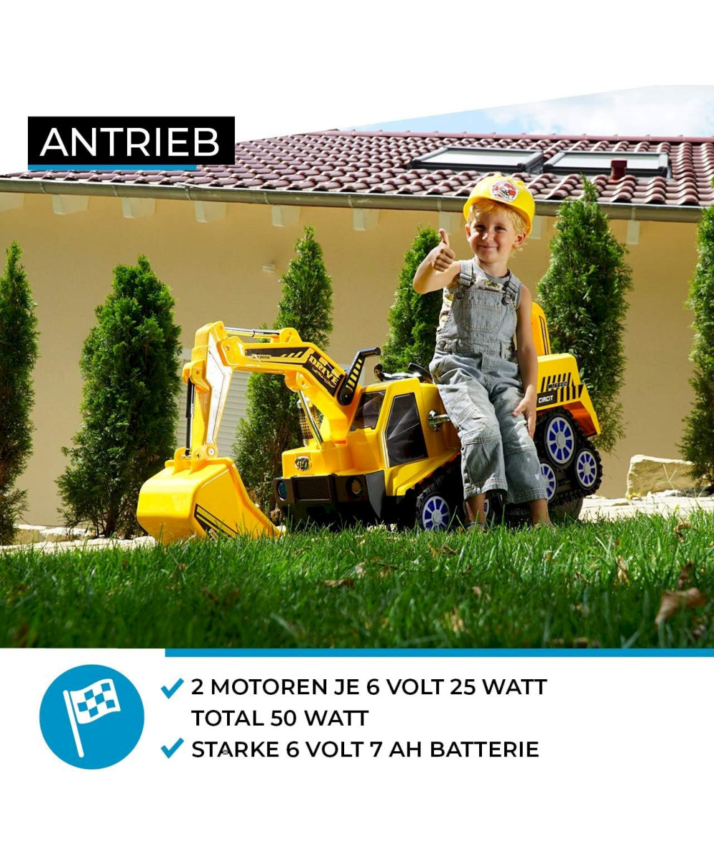 ActionBikes Kinder-Elektrobagger gelb Elektroauto Kinderauto Elektrofahrzeug