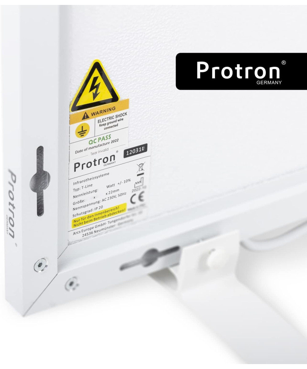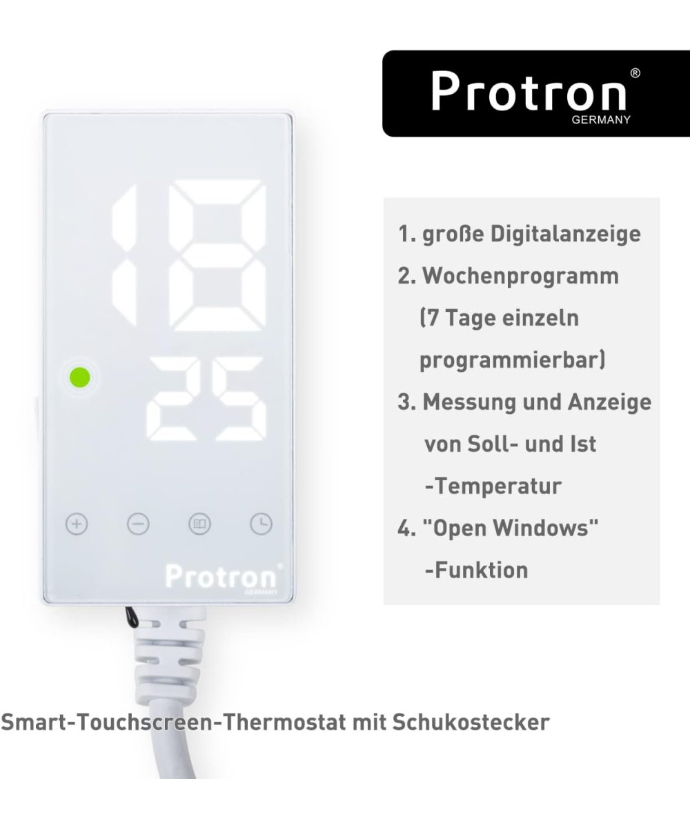 Protron Infrarotheizung 1000W samt Zuleitung 170cm und Smart-Touchscreen-Thermostat