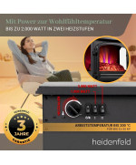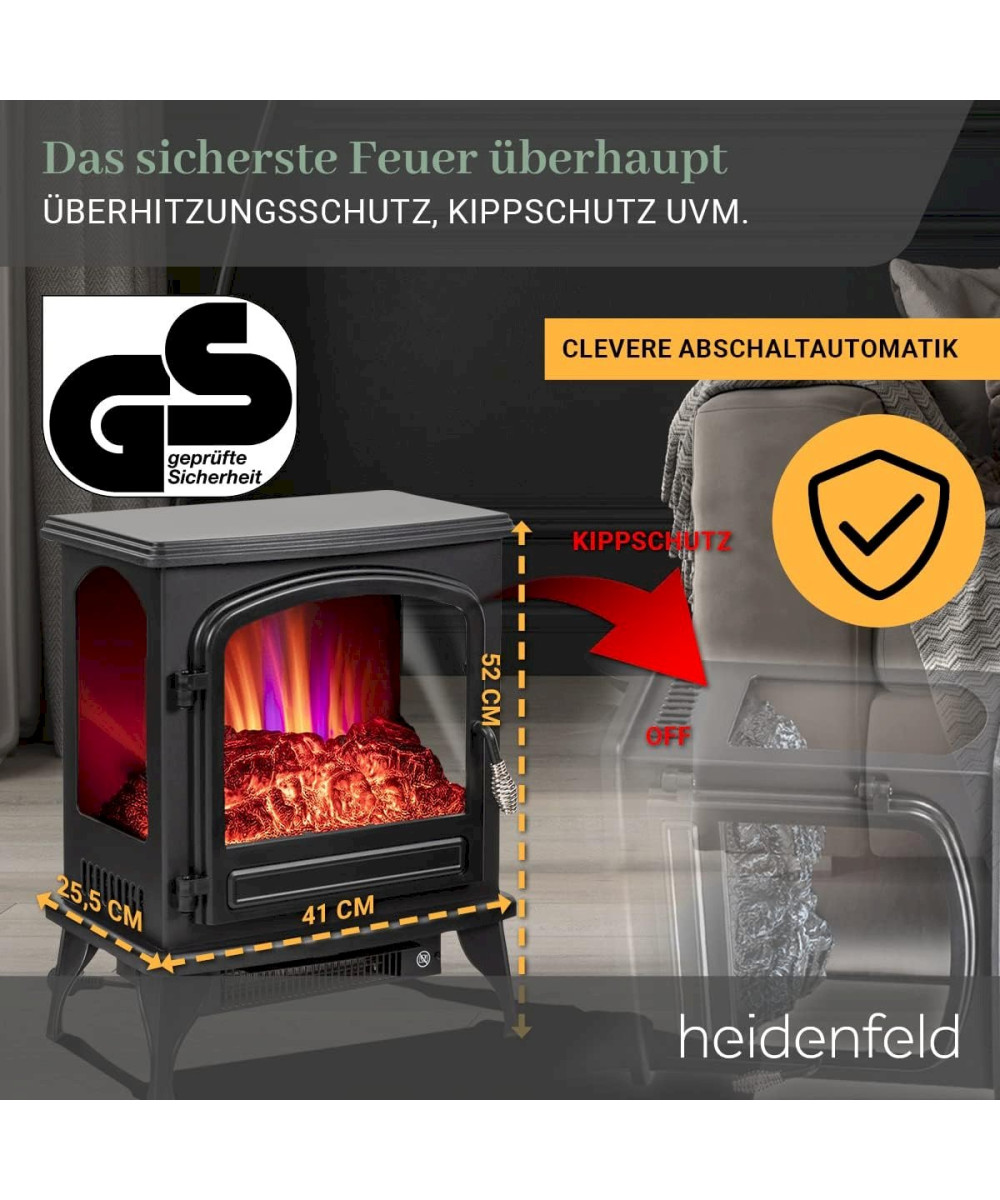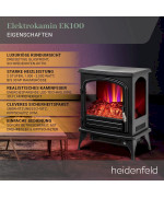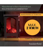 Heidenfeld Elektrokamin EK100 Standkamin 3D-Flammeneffekt Heizung Heizlüfter Heizgerät
