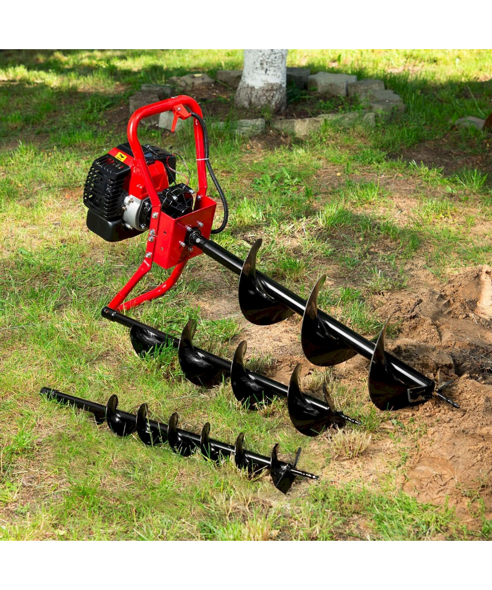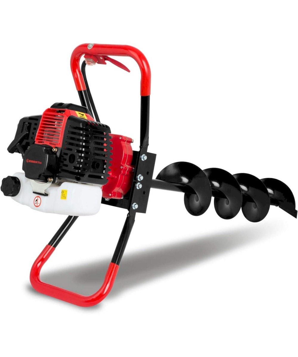 EBERTH Erdlochbohrer Erdbohrer Benzin 3PS 2-Takt Motor Inklusive 3 Bohrer