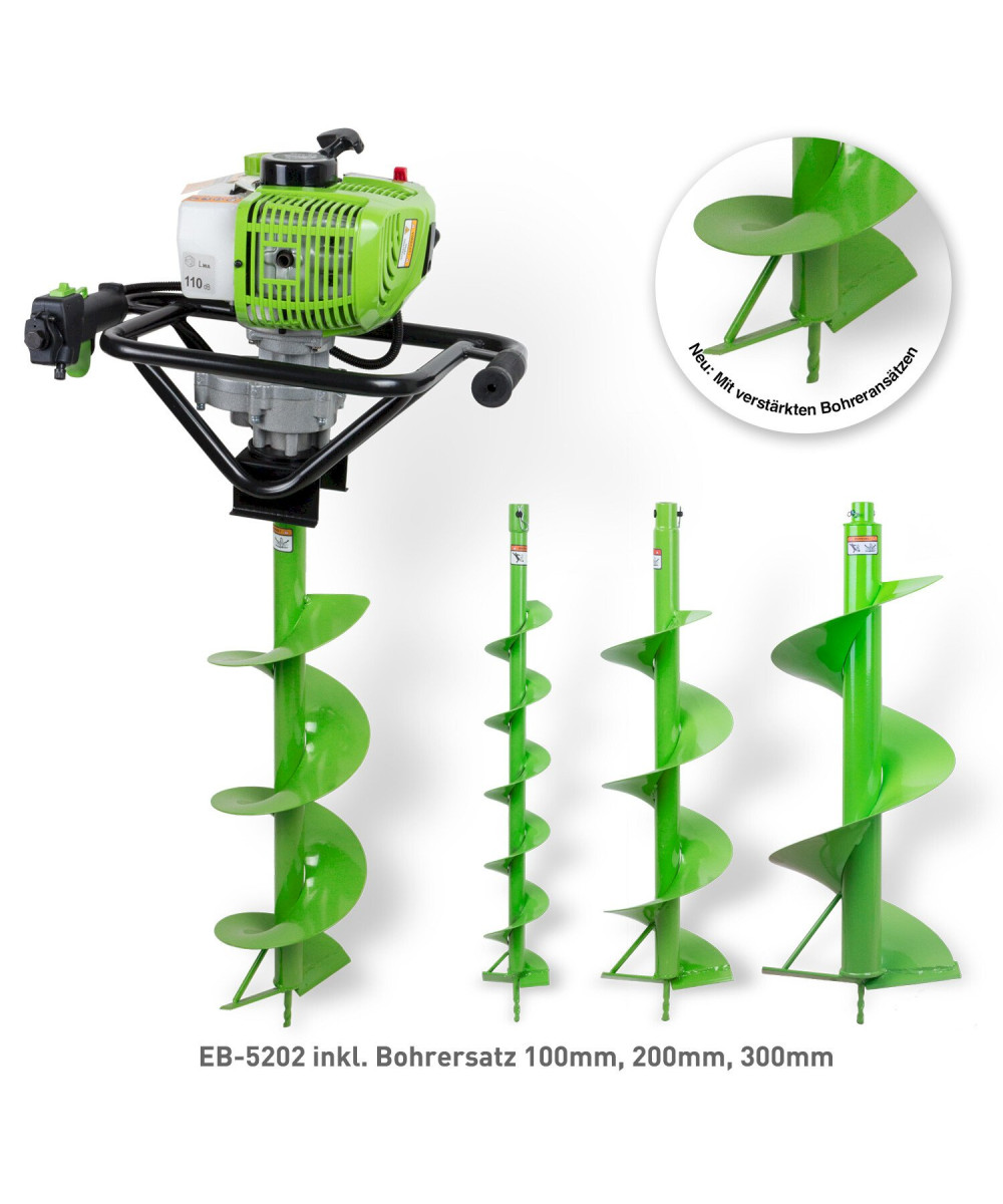 BullPower EB-5202 Benzin Erdbohrer 52ccm Erdbohrgerät Erdlochbohrer Pfahlbohrer (100mm + 200mm + 300mm)