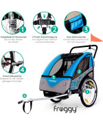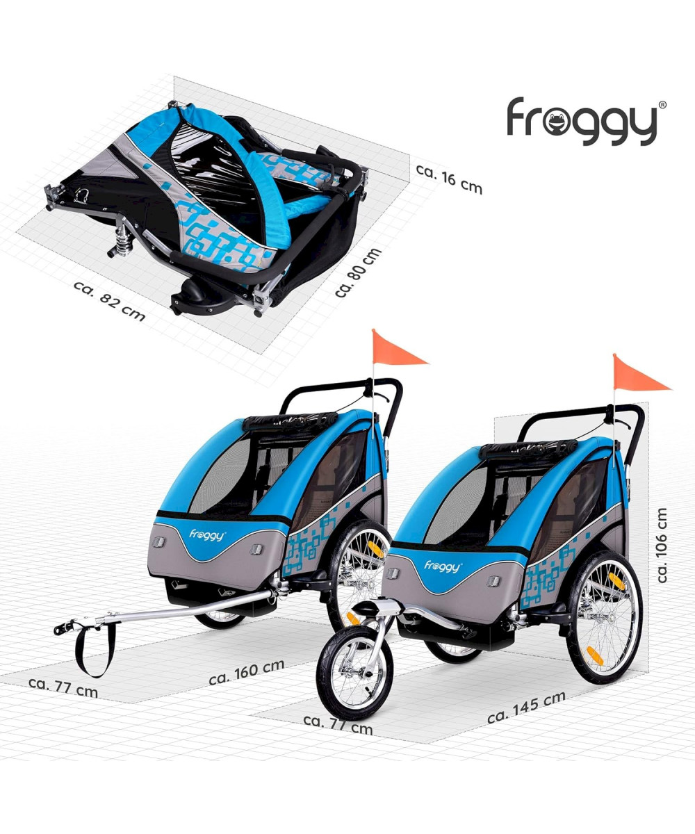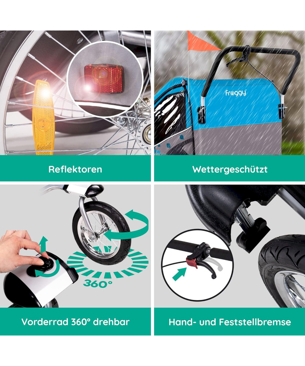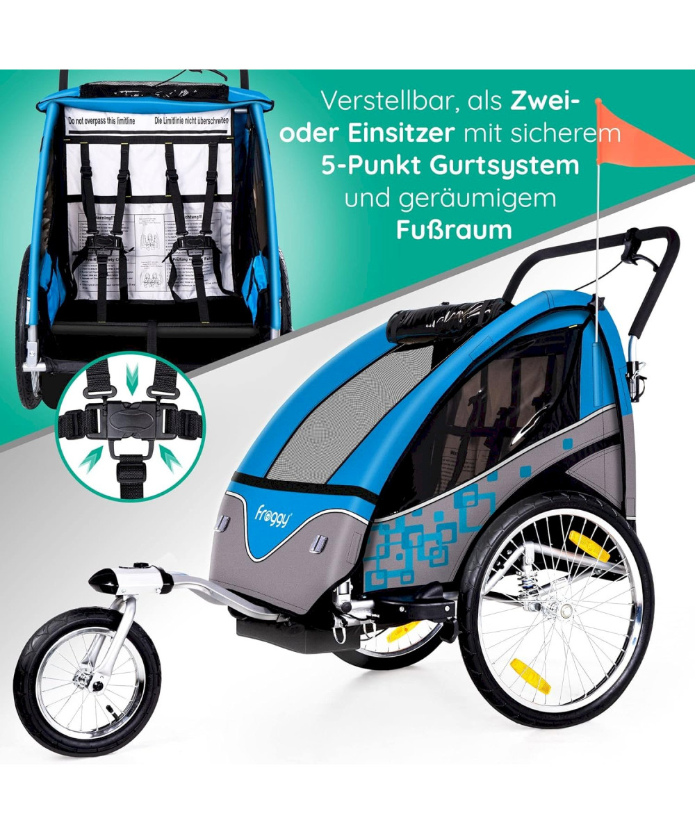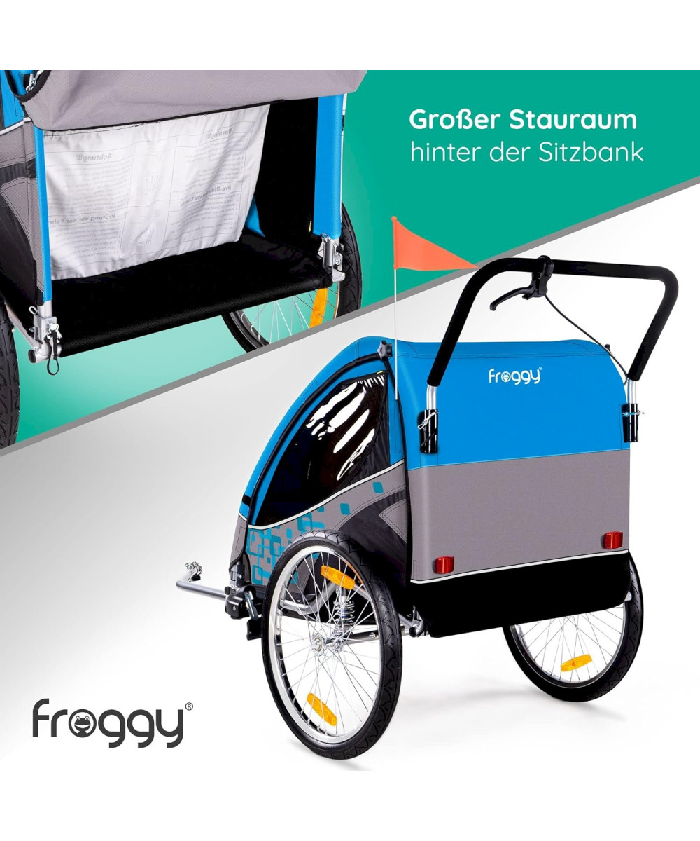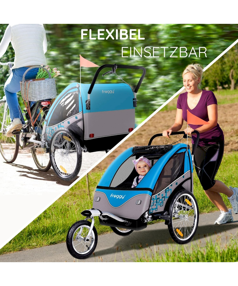 FROGGY Kinder Fahrradanhänger + Jogger 2in1 für 1 bis 2 Kinder, Türkis