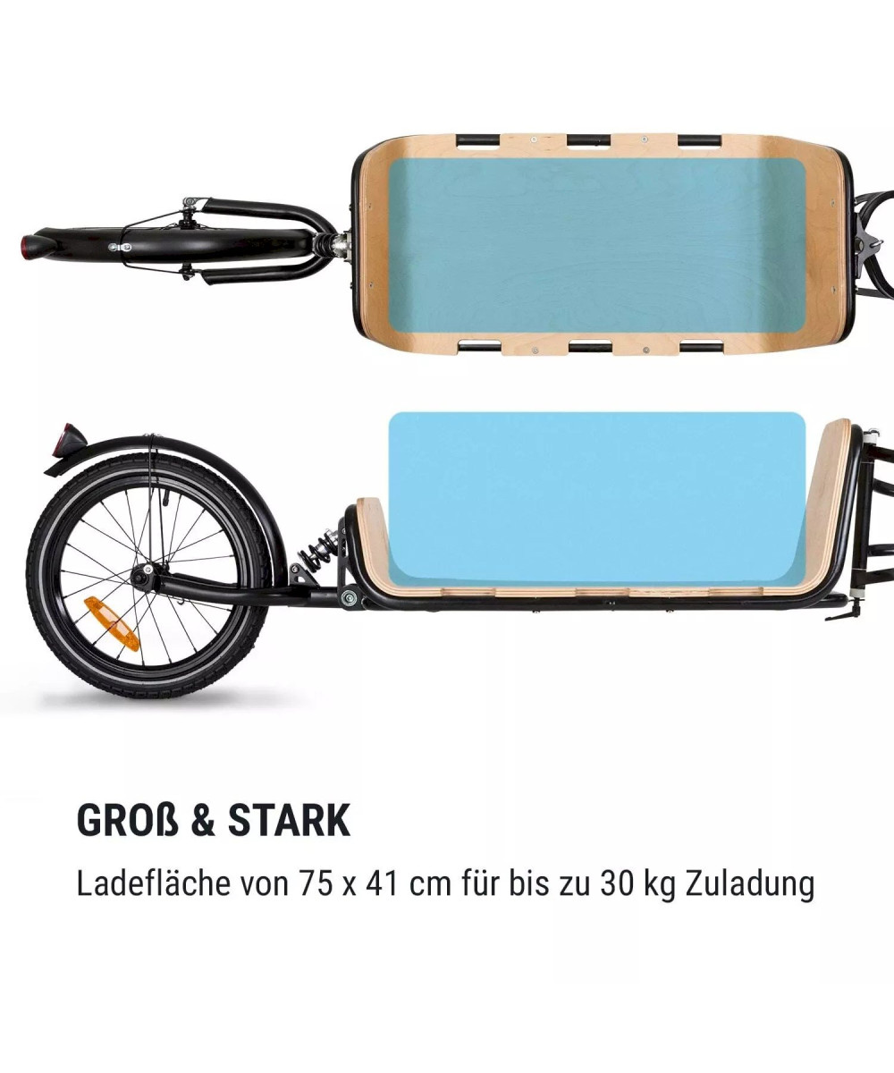 Klarfit Companion Chaser Fahrradanhänger Transport Lasten Trekking Nachläufer 30 kg 16" Multiplex Birke