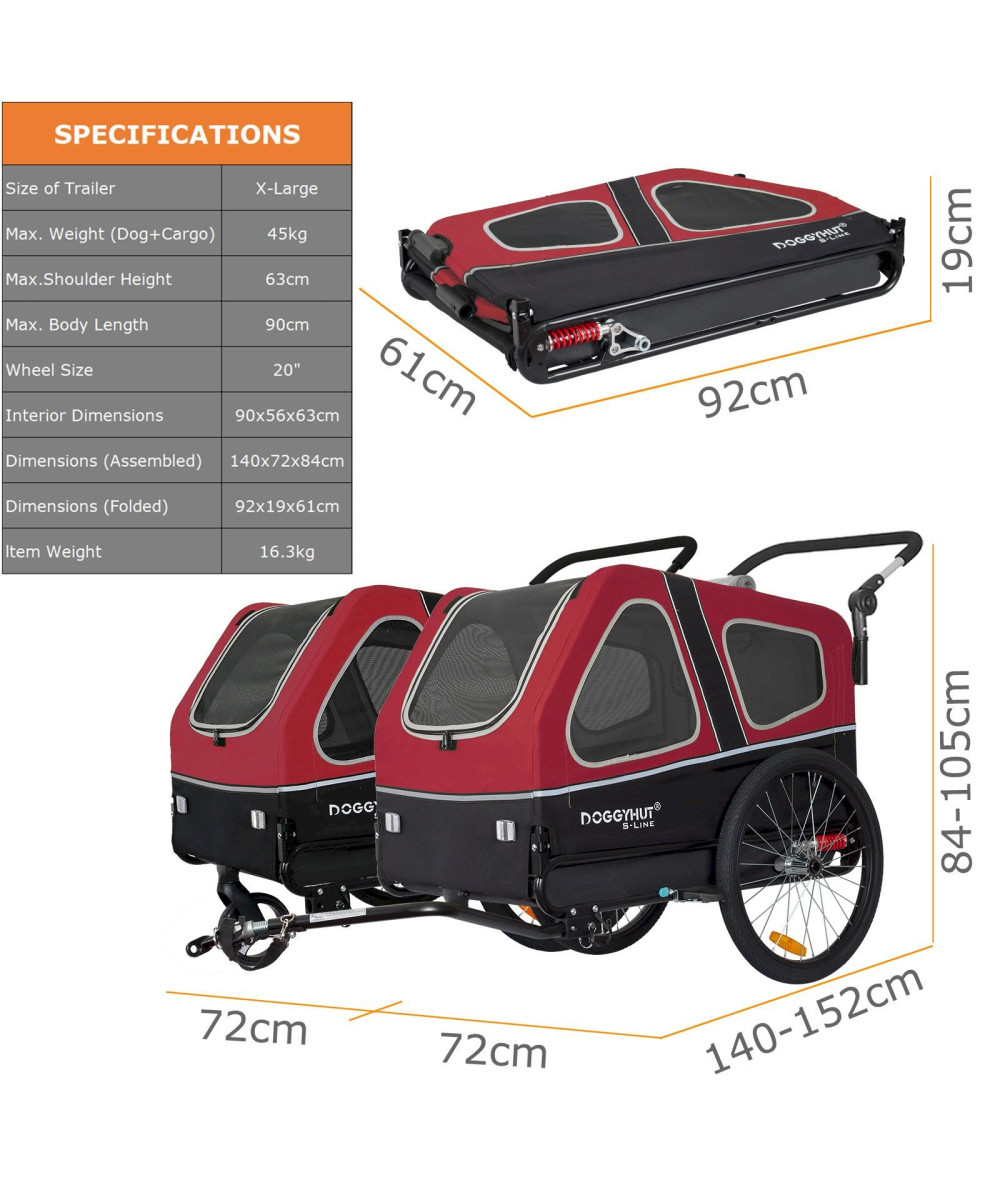 DOGGYHUT S-Line XXL Fahrradanhänger & Hundebuggy 2 in 1 rot