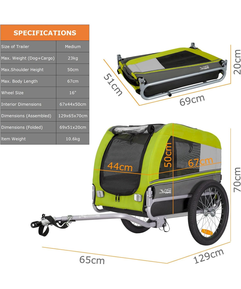 TIGGO VS Pets M Hundefahrradanhänger GRÜN Hundeanhänger Hundetransporter Fahrradanhänger MEDIUM