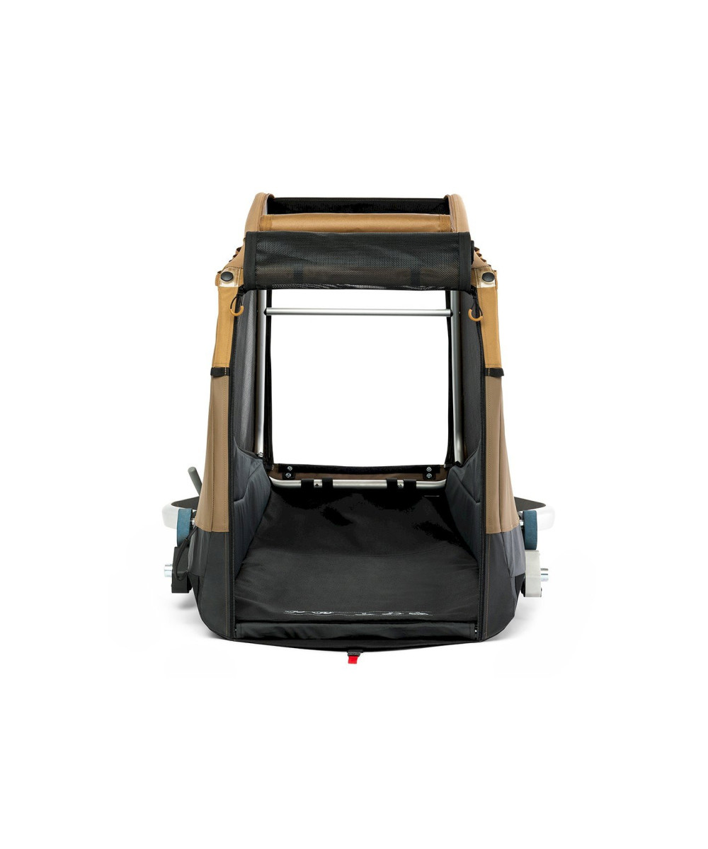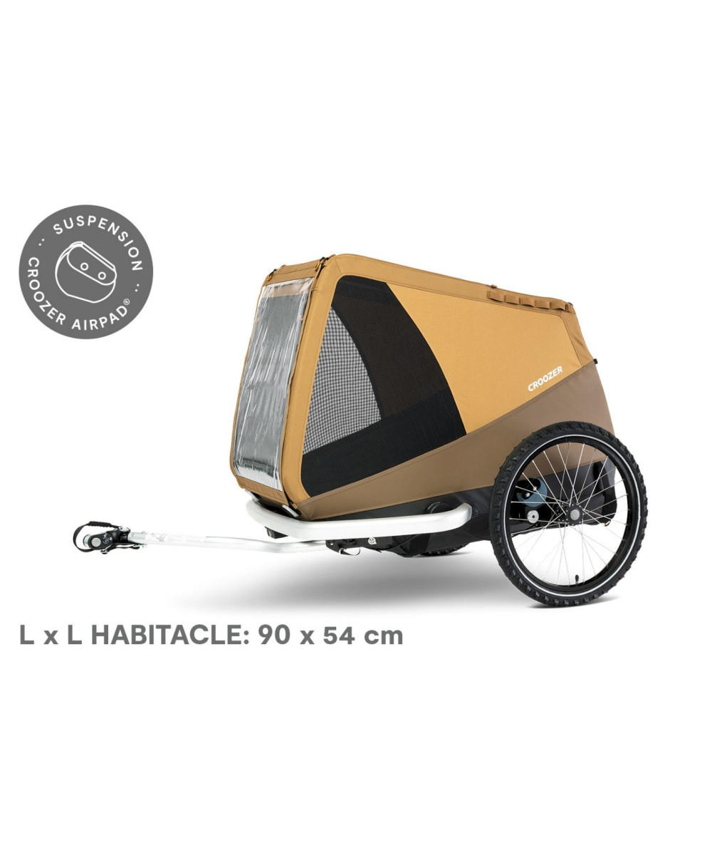 Fahrradanhänger für den Transport von großen Hunden bis 45 kg. Mit Croozer AirPad® Federung, geländetauglicher Bereifung und komfortablem Faltsystem.