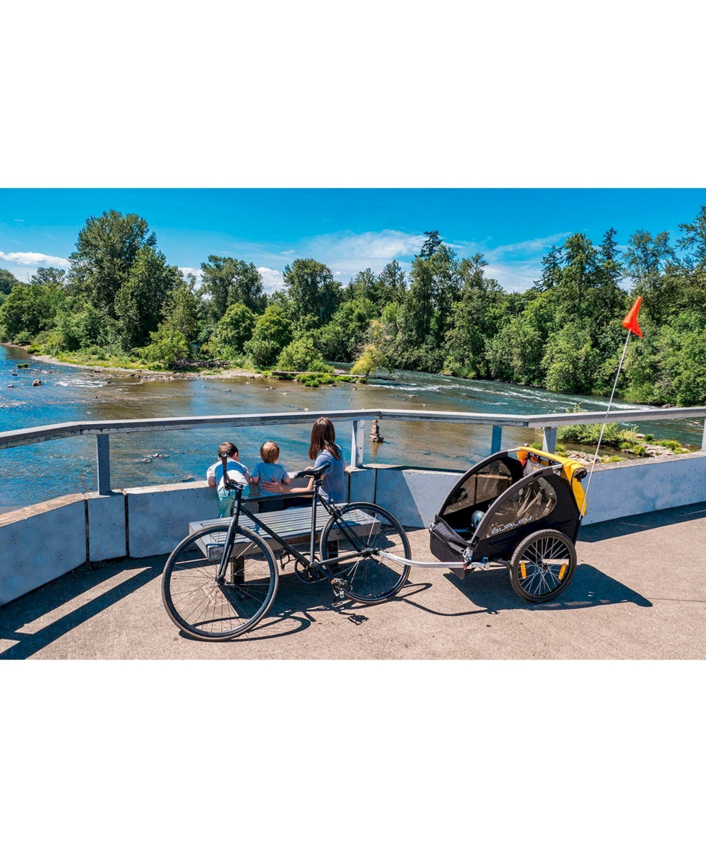 - Flex Connector bietet die Möglichkeit das Fahrrad hin zu legen, während der Kinderanhänger aufrecht stehen bleibt