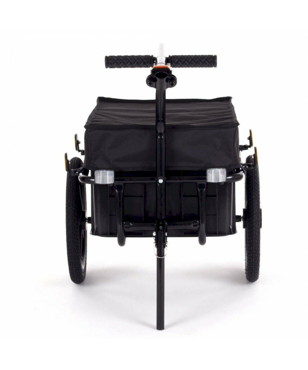 Um seine Alltagstauglichkeit zu untermauern, zeichnet sich unser Fahrradanhänger, der mit 16' Luftbereifung zu Ihnen kommt durch seine Kugelkupplung für eine schnelle Befestigung und eine praktische Abdeckplane aus. Das robuste Metallgestell ist für die Sicherheit im Straßenverkehr mit 8 Reflektoren versehen. Dank der ausgeklügelten Konstruktion werden Sie stets über die Flexibilität kombiniert mit einer außergewöhnlichen Robustheit staunen. Der große Innenraum hält als Fahrradanhänger einer Belastung von bis zu 40 kg stand, die flexible Bauweise ermöglicht Ihnen außerdem die Nutzung als Handwagen und dabei eine Zuladung bis zu 60 kg.