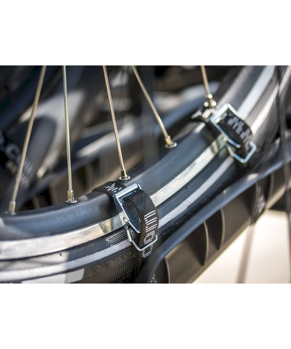 - Befestigung der Fahrräder durch Rahmenhalterung und Textilspanngurte ( nicht abschließbar)