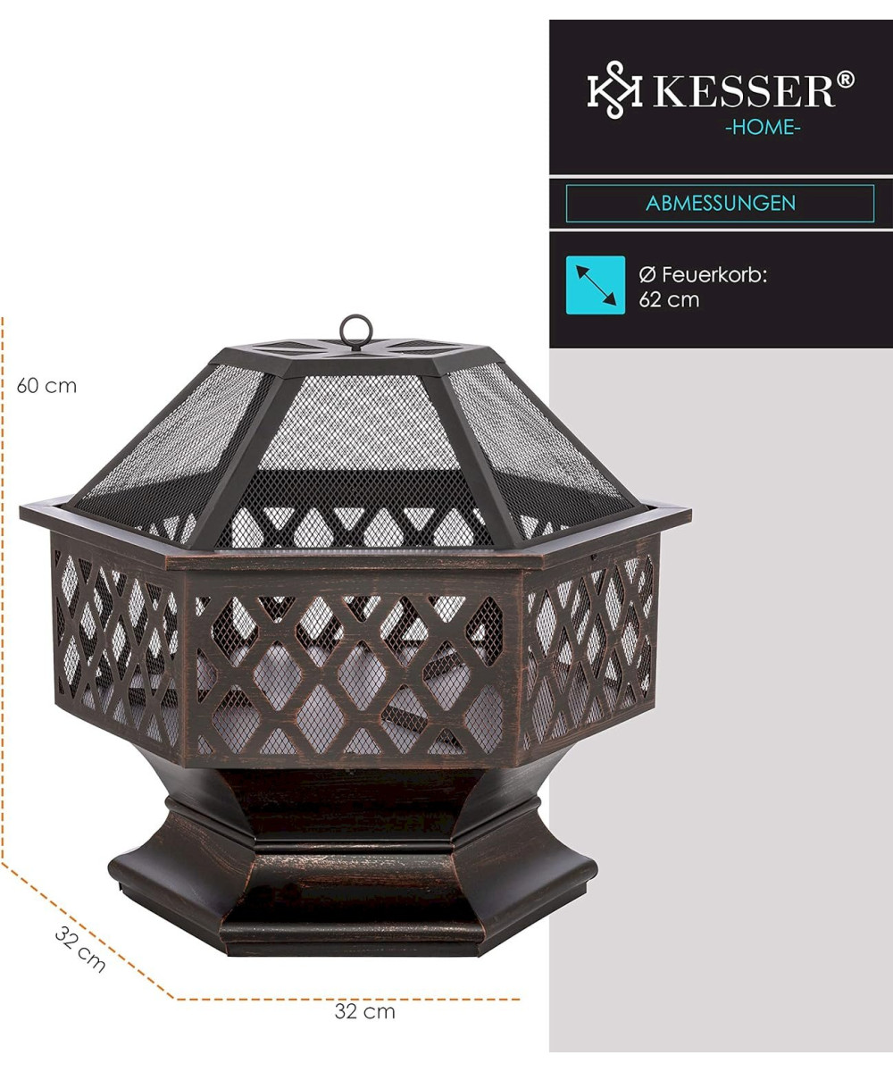 KESSER Feuerschale mit Grillrost 3in1 Feuerstelle Feuerkorb Funkenschutz Grill