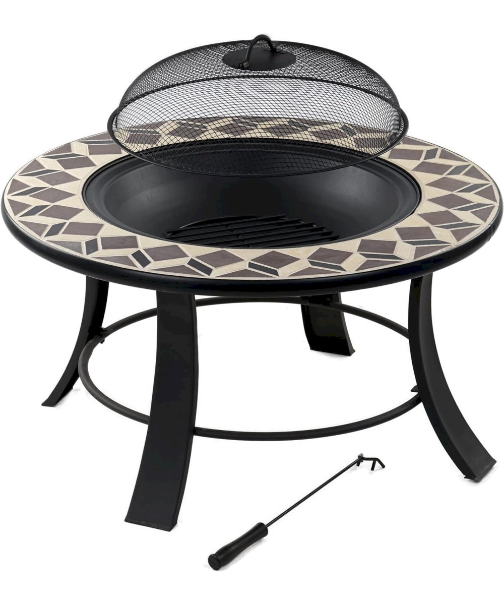 1x Feuerschale mit Metall-Gestell, 1x Kohlerost, 1x Abdeckhaube, 1x Schürhaken, 1x Montageanleitung, 1x Montagezubehör