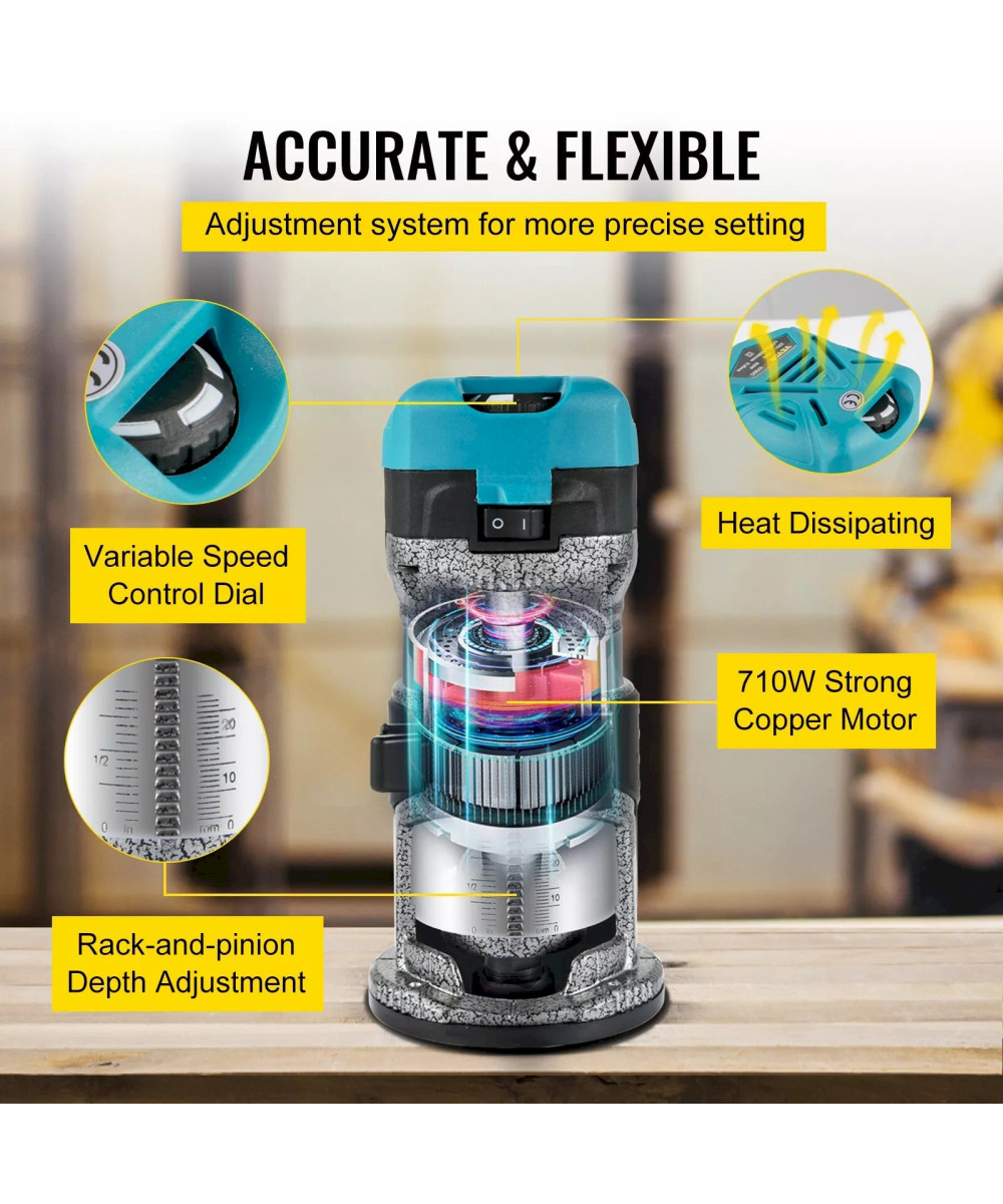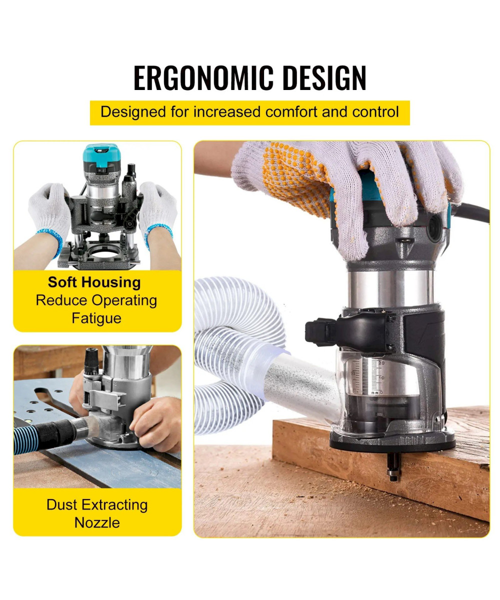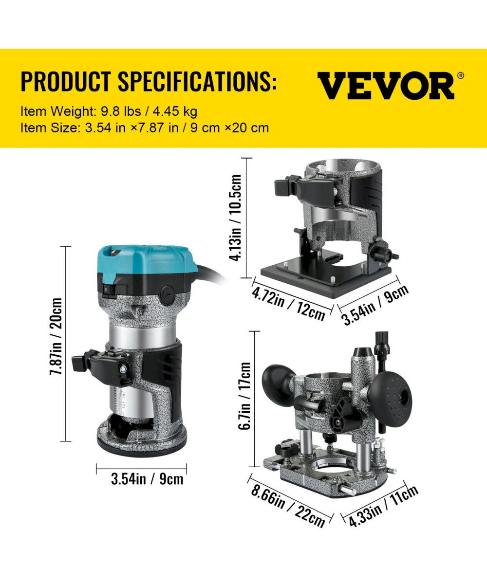 VEVOR Oberfräse 710W Kantenfräse Trimmer Fräsmaschine Neigungsbasis Tauchbasis