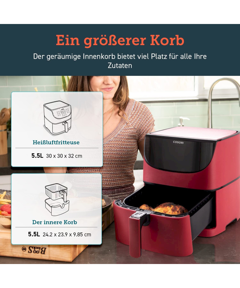 COSORI Premium XXL Heißluftfritteuse 5,5 Liter rot