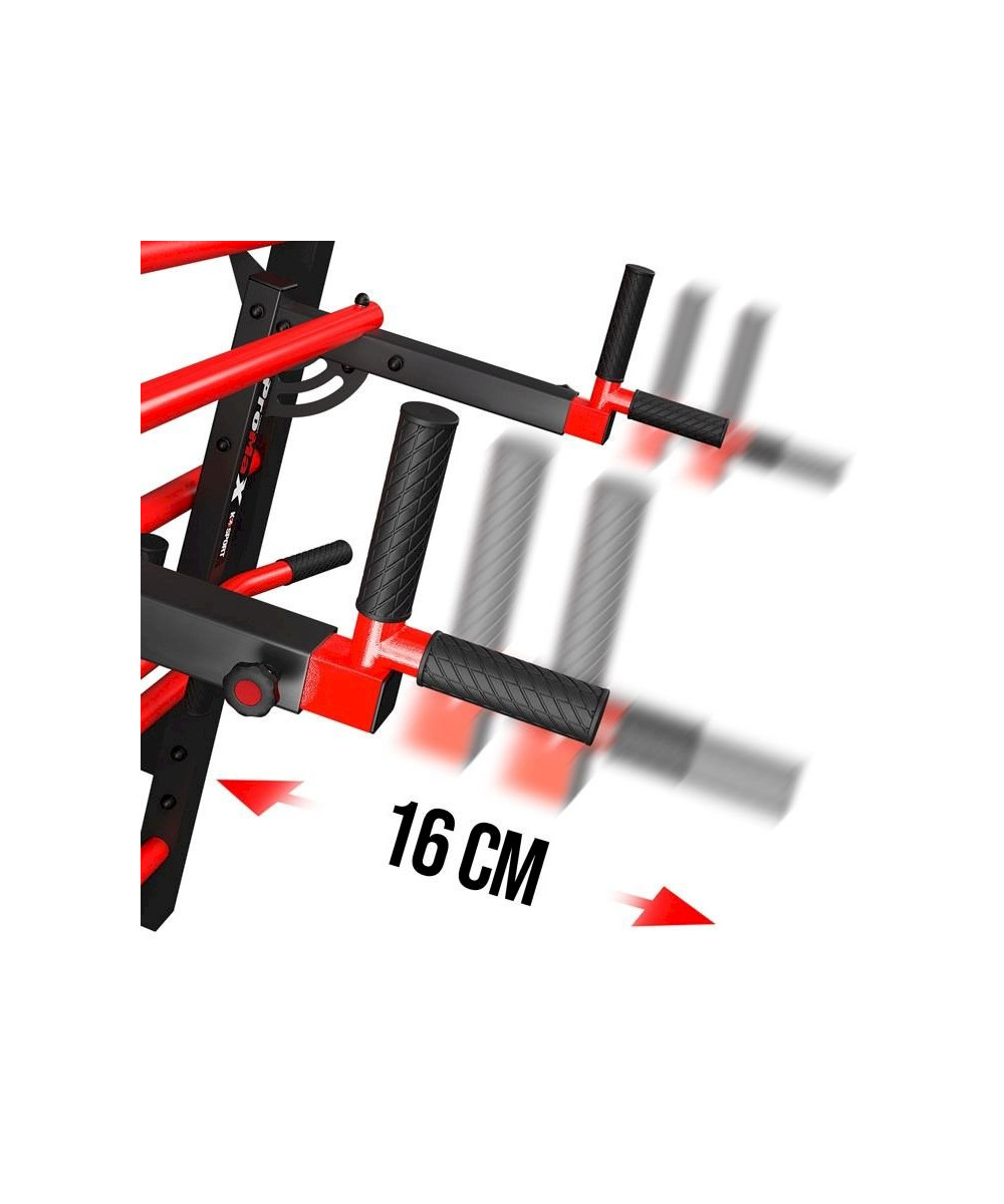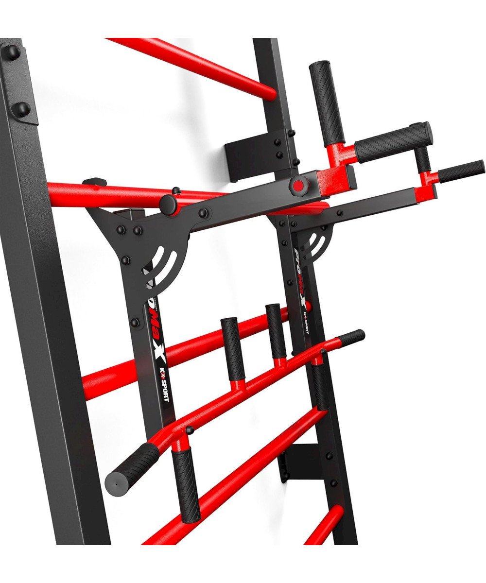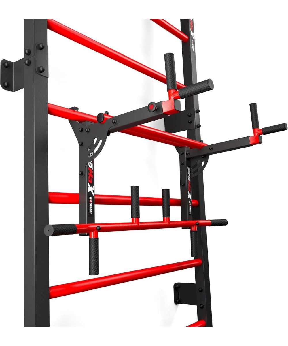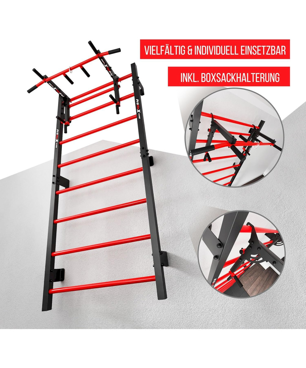 Maximale Flexibilität: Das multifunktionale Trainingsgerät lässt sich während des Workouts mit wenigen Handgriffen problemlos von einer Klimmzugstange zu einem Barren umbauen, indem du die Dip Station einfach in die Sprossenwand einhängst.