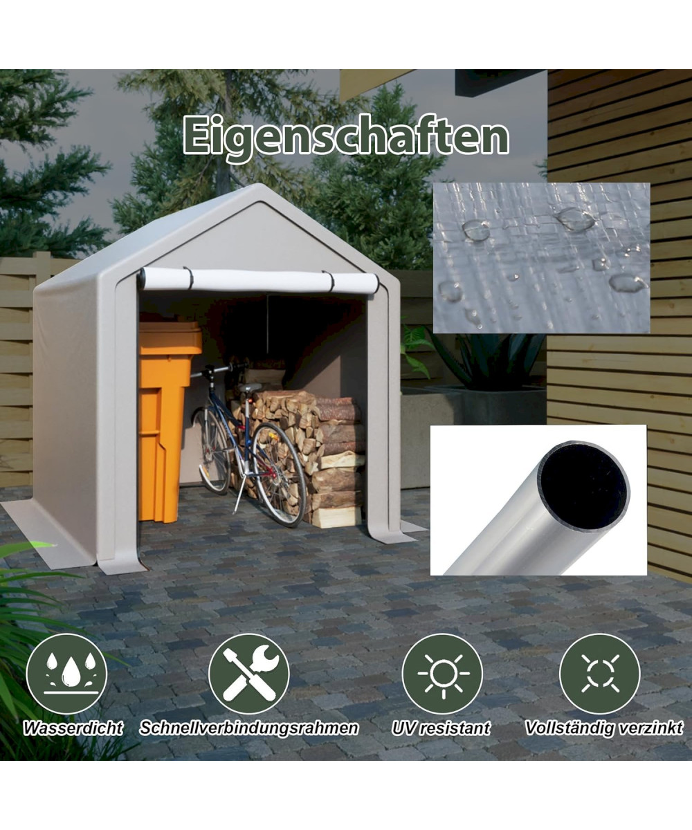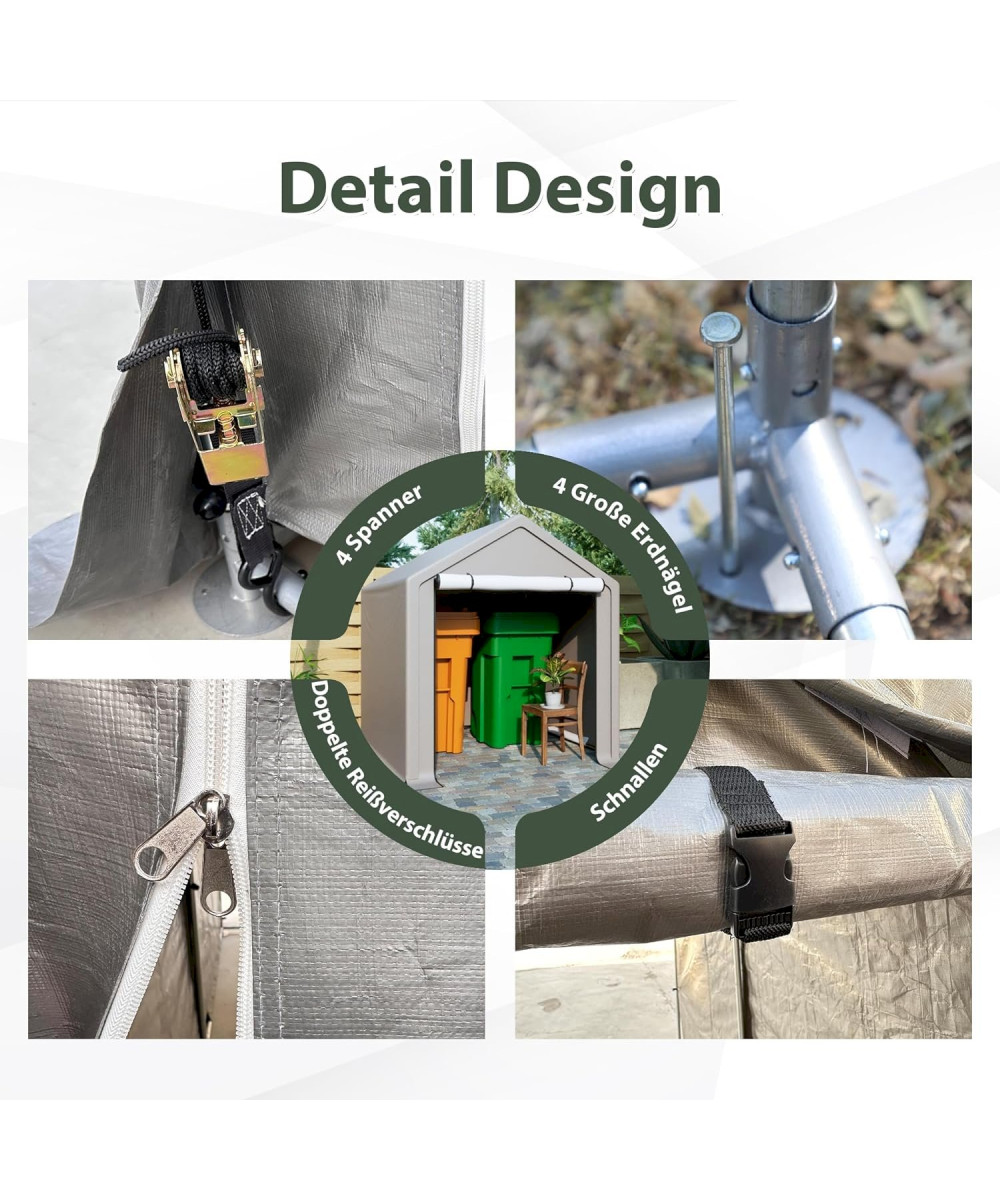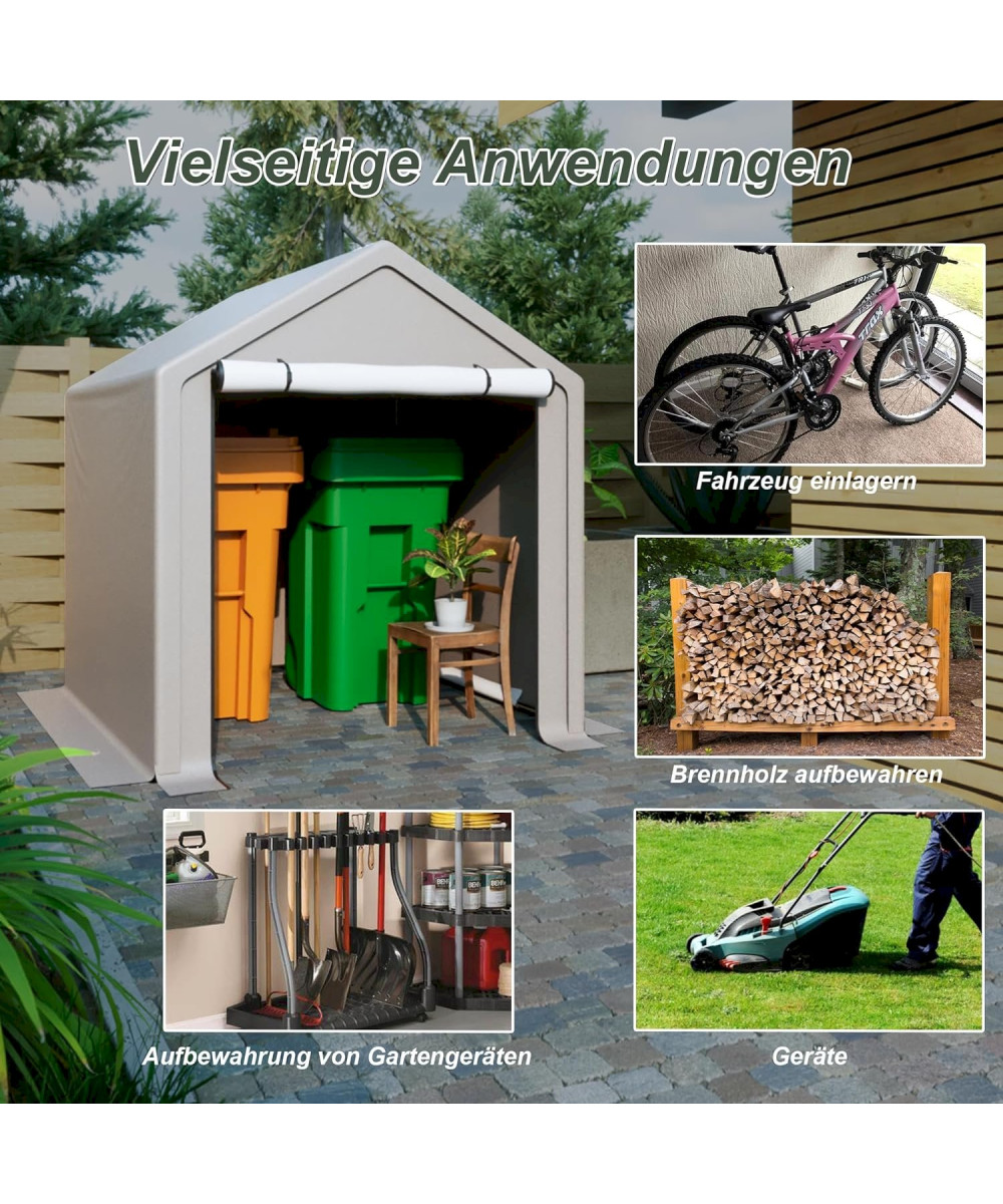Wasserdichte Abdeckung: Die Abdeckung dieses Schuppens besteht aus 180 g extra dickem Polyethylen, das nicht leicht zu reißen, lichtbeständig, wasserdicht, UV-beständig, winddicht, regenfest, staubdicht und schneesicher ist.