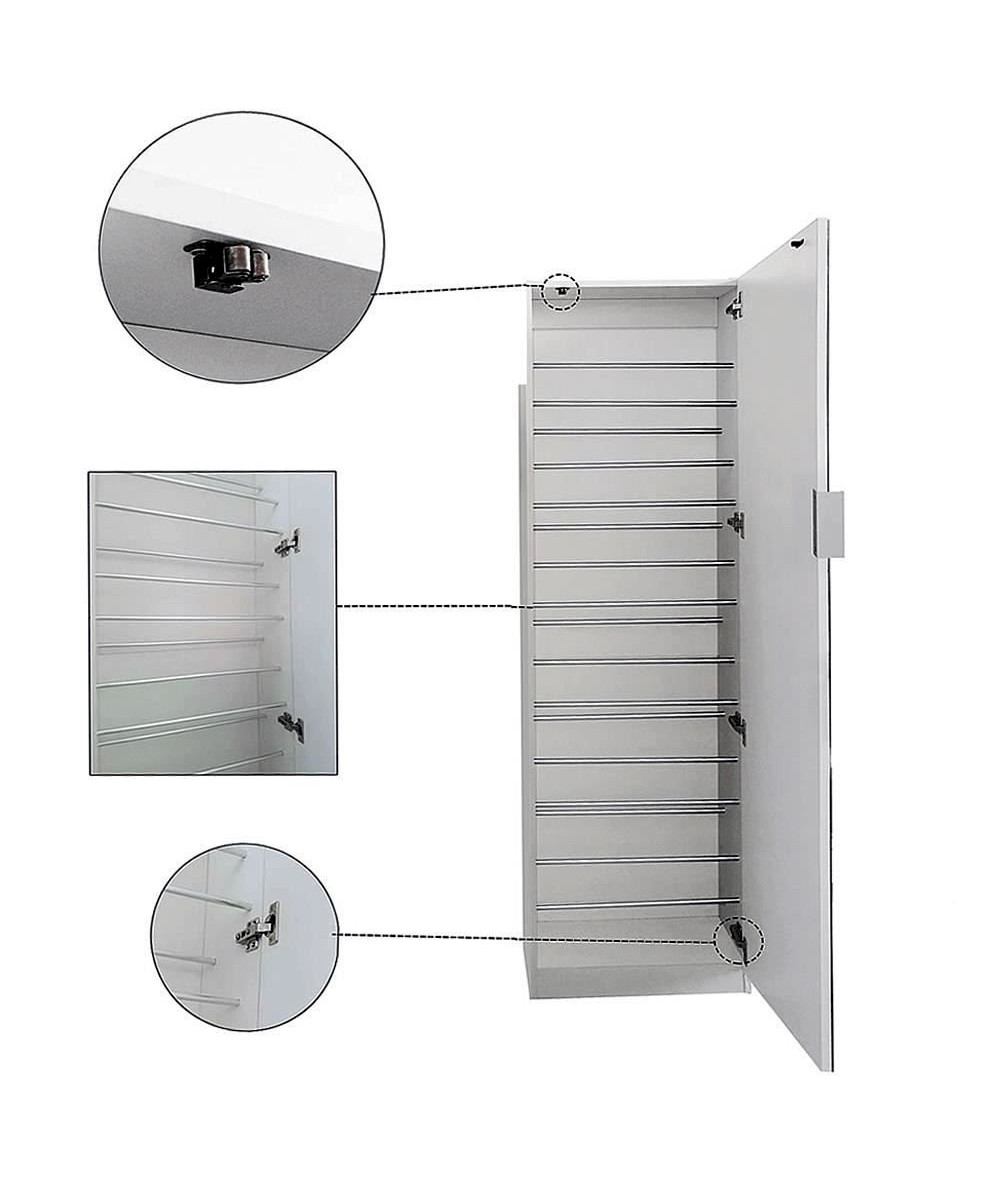 Der hochwertige Spiegelschuhschrank überzeugt durch seine Geräumigkeit. Und weil die Schuhe senkrecht gelagert werden, wird er bei Ihnen nicht weit von der Wand abstehen. Und falls es sich bei Ihnen um einen engen Eingangsbereich handelt, wird er dadurch besonders platzsparrend sein. Darüber hinaus können Sie sich auf eine großzügige Spiegelfläche freuen. Neben einer Garderobe platziert entfällt für Sie somit die Notwendigkeit für einen separaten Garderobenspiegel.