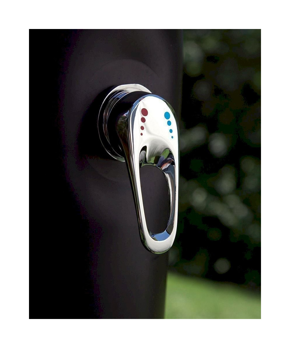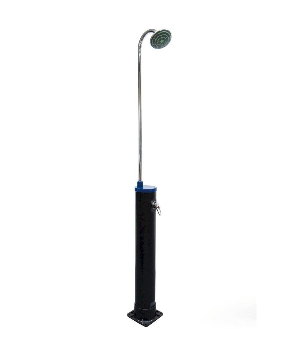 Warmes Wasser zum Nulltarif! Die 217 cm hohe Speedshower Solardusche verfügt über einen großen 20L Kunststofftank, einer Einhebel-Mischbatterie, und einer geteilten Konstruktion für eine platzsparende Einlagerung. Der selbstentkalkende Monsun Duschkopf, die Ablagefläche für Badeutensilien und ein integrierter Handtuchhalter sind ein besonderes Highlight dieser Dusche. Der maximale Betriebsdruck beträgt 3 bar, ein Anschluss für den Gartenschlauch ist serienmäßig. Der stabile Standfuß verfügt über eine Abmessung von 215 x 215 mm (Bohrung Ø 12 mm).