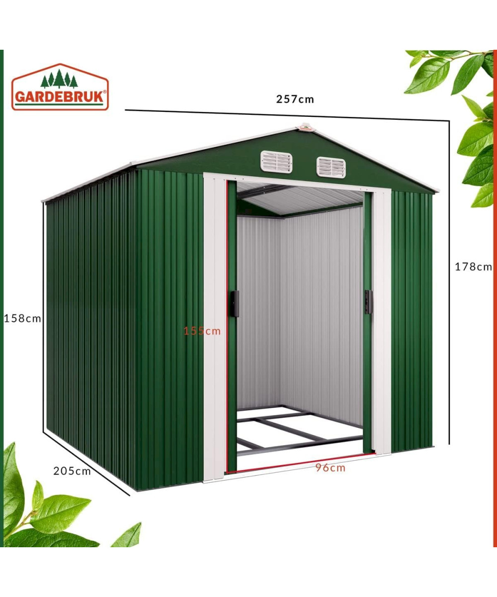 GARDEBRUK Gerätehaus Geräteschuppen Metall Grün 257x205x177,5cm mit Fundament