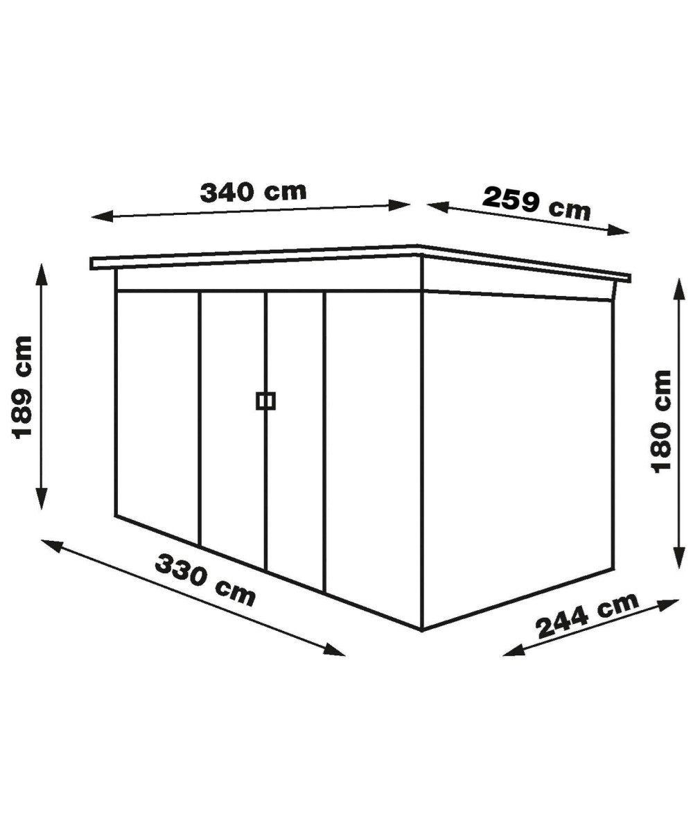 - Komplett-Außenmaße BxTxH: Ca. 340x259x189 cm