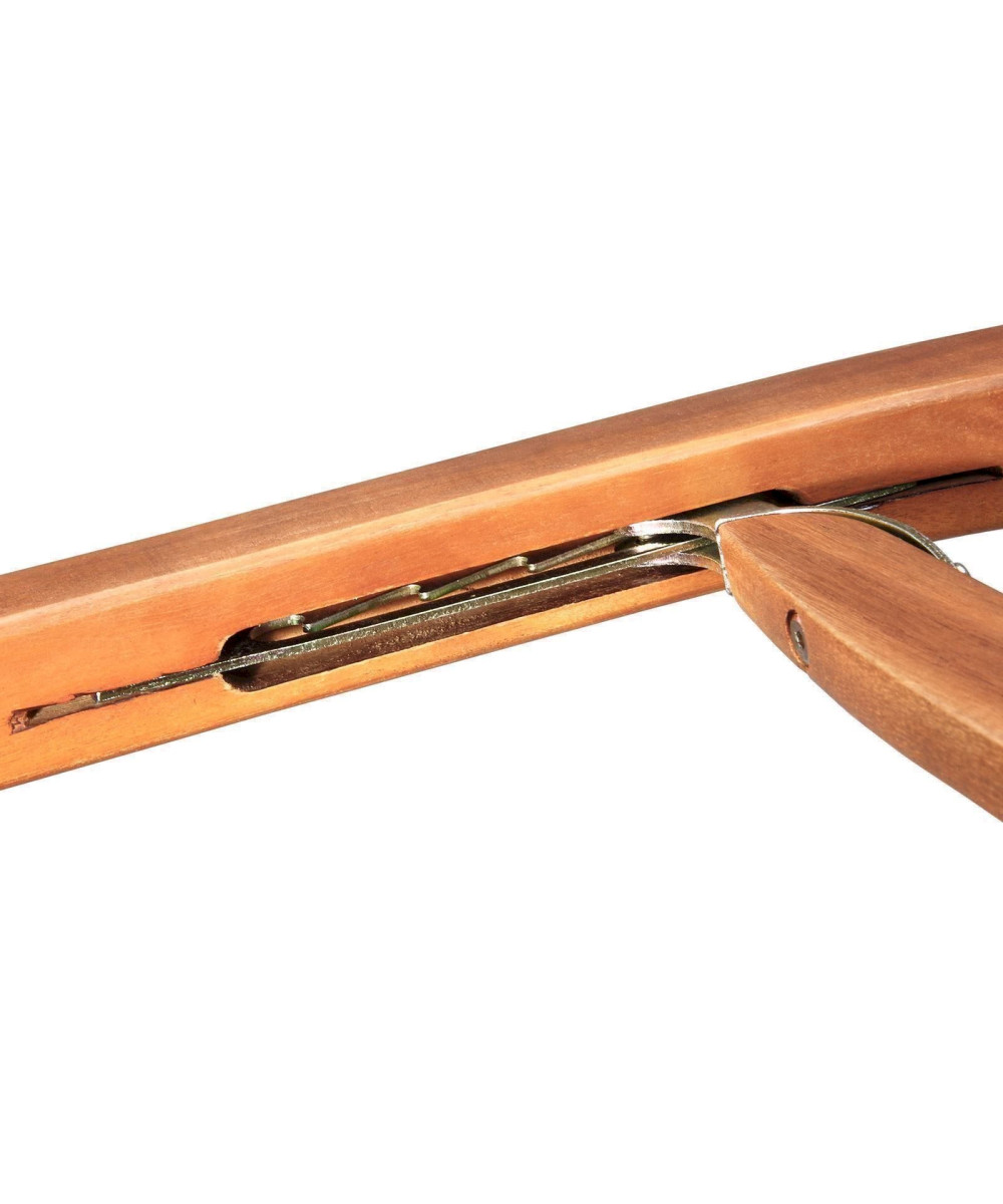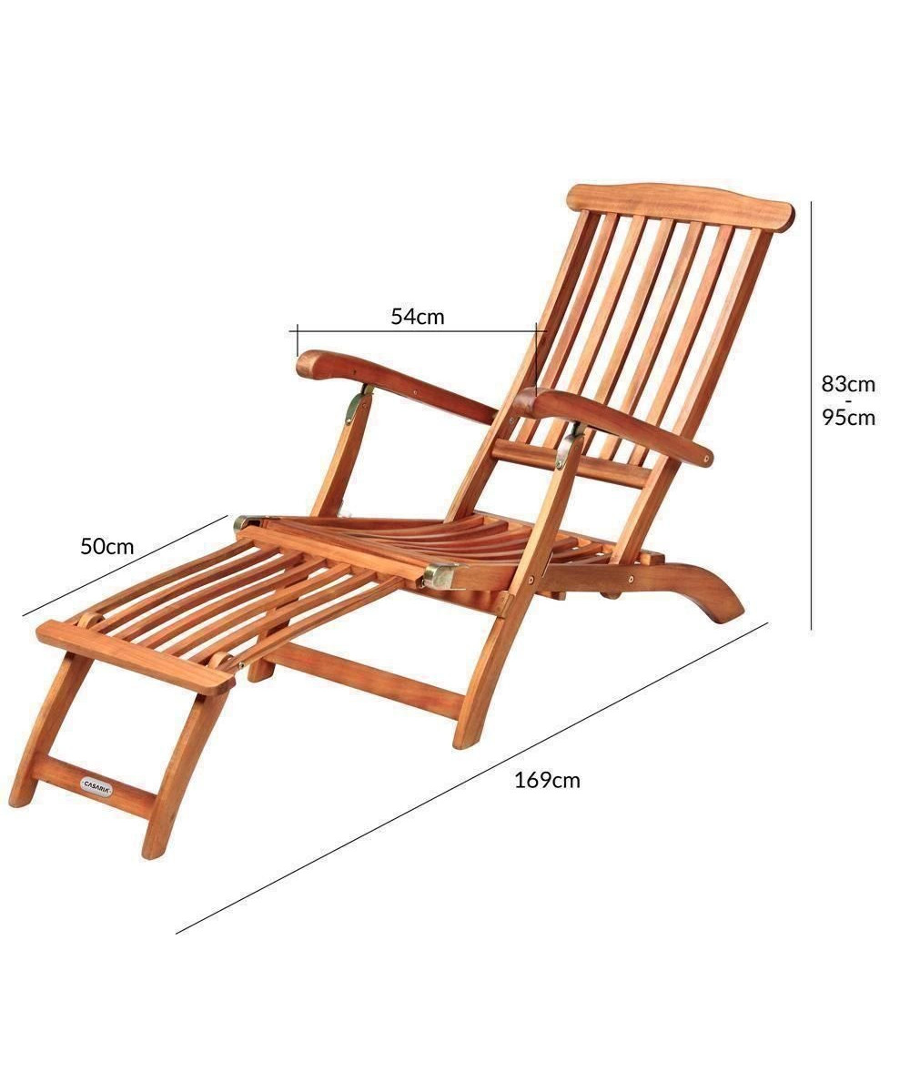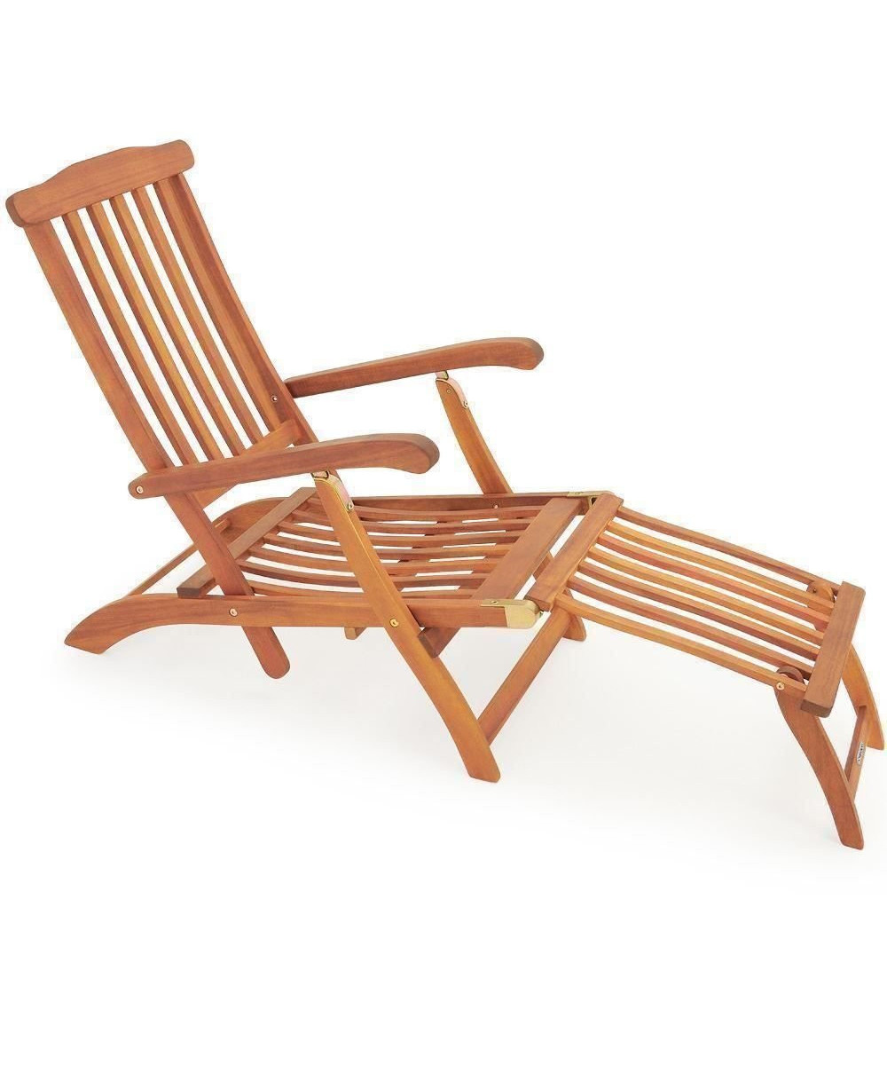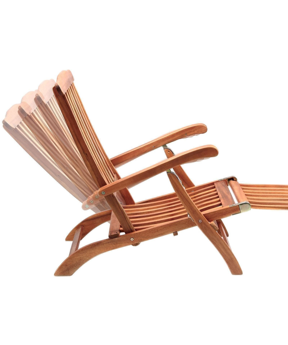 Die klappbare Sonnenliege aus Akazien-Holz mit bequemer Fußablage und verstellbarer Rückenlehne verwöhnt Sie mit hohem Liegekomfort.