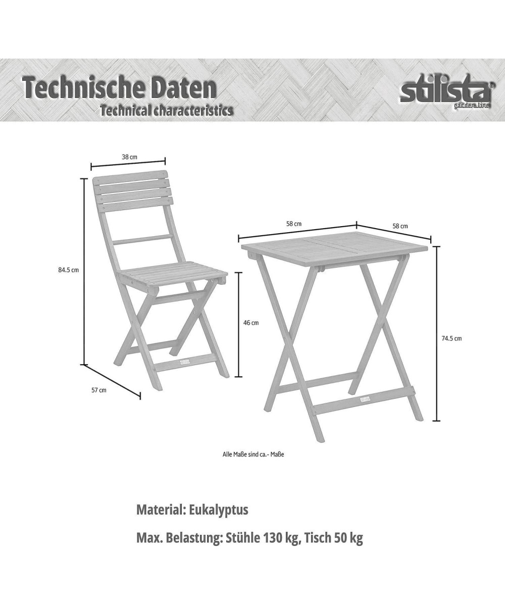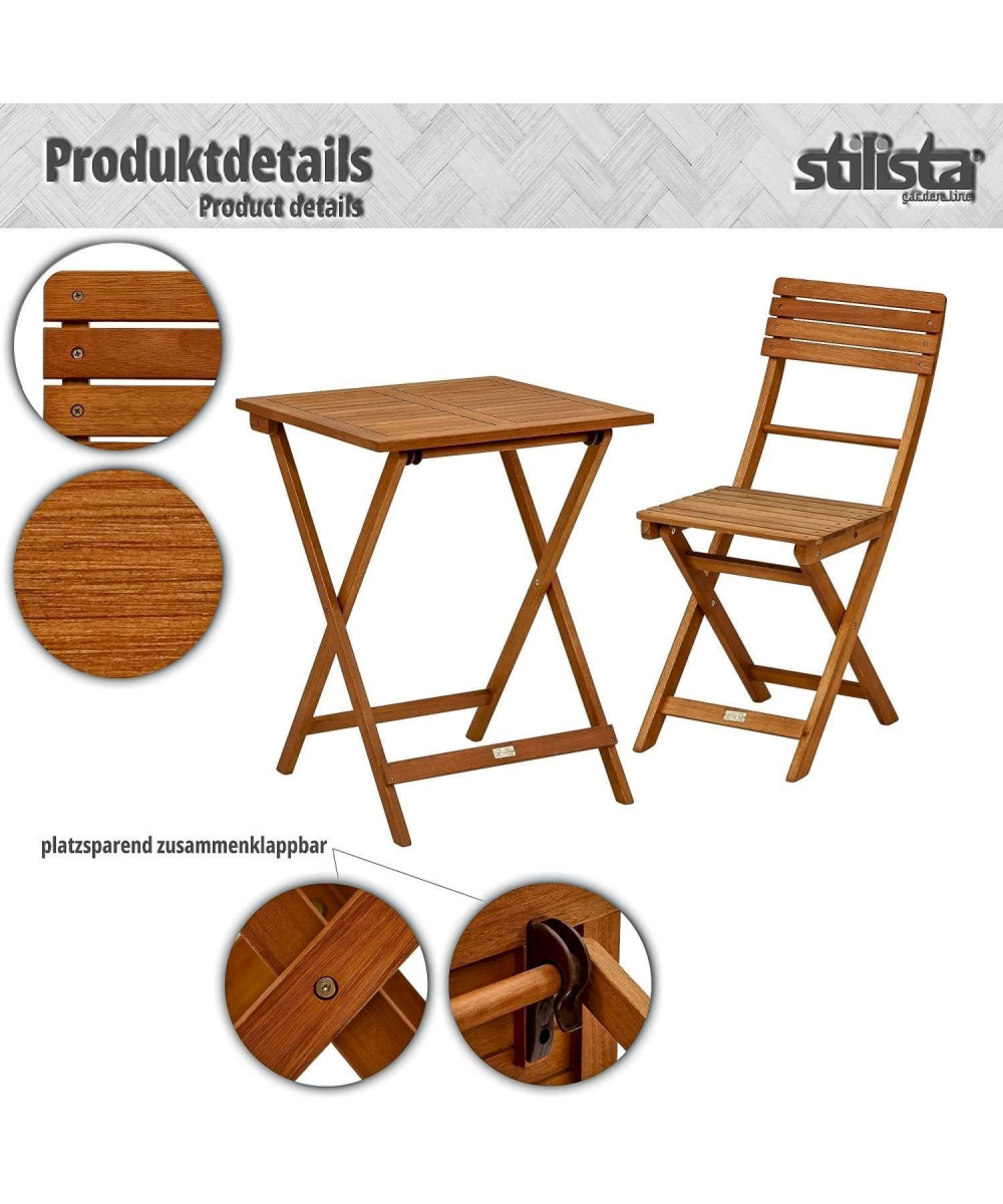 STILISTA Bistro Set 3-tlg - Gartentisch und zwei Gartenstühlen