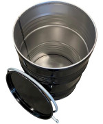 Dieses Metallfass mit einem Volumen von 210 Litern ist aus kaltgewalztem Metallblech gefertigt und außen durch Lackierung rostfrei.