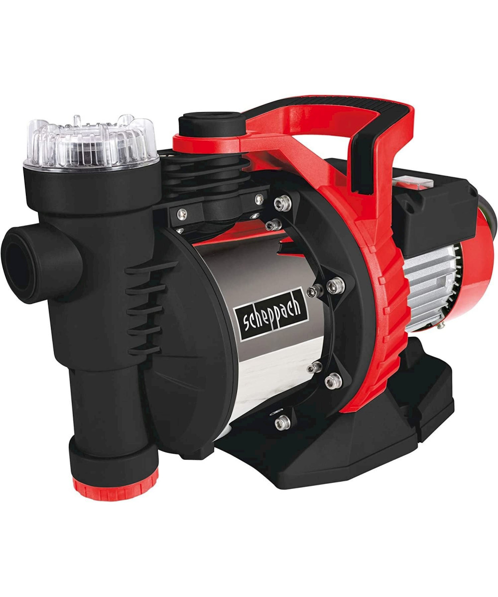 Die scheppach 1300 W Gartenpumpe ist ein leistungsfähiger Gartenhelfer für Hobbygärtner, die für die Bewässerung Ihres Gartens gerne auf Regenwasser zurückgreifen. 5400 L bewegt der 1300 W Motor stündlich bei einem maximalen Förderdruck von 5 bar, dabei kann das Wasser aus einer Tiefe von bis zu 8 m gefördert werden. Mit dem Tragegriff lässt sich die Pumpe leicht transportieren.