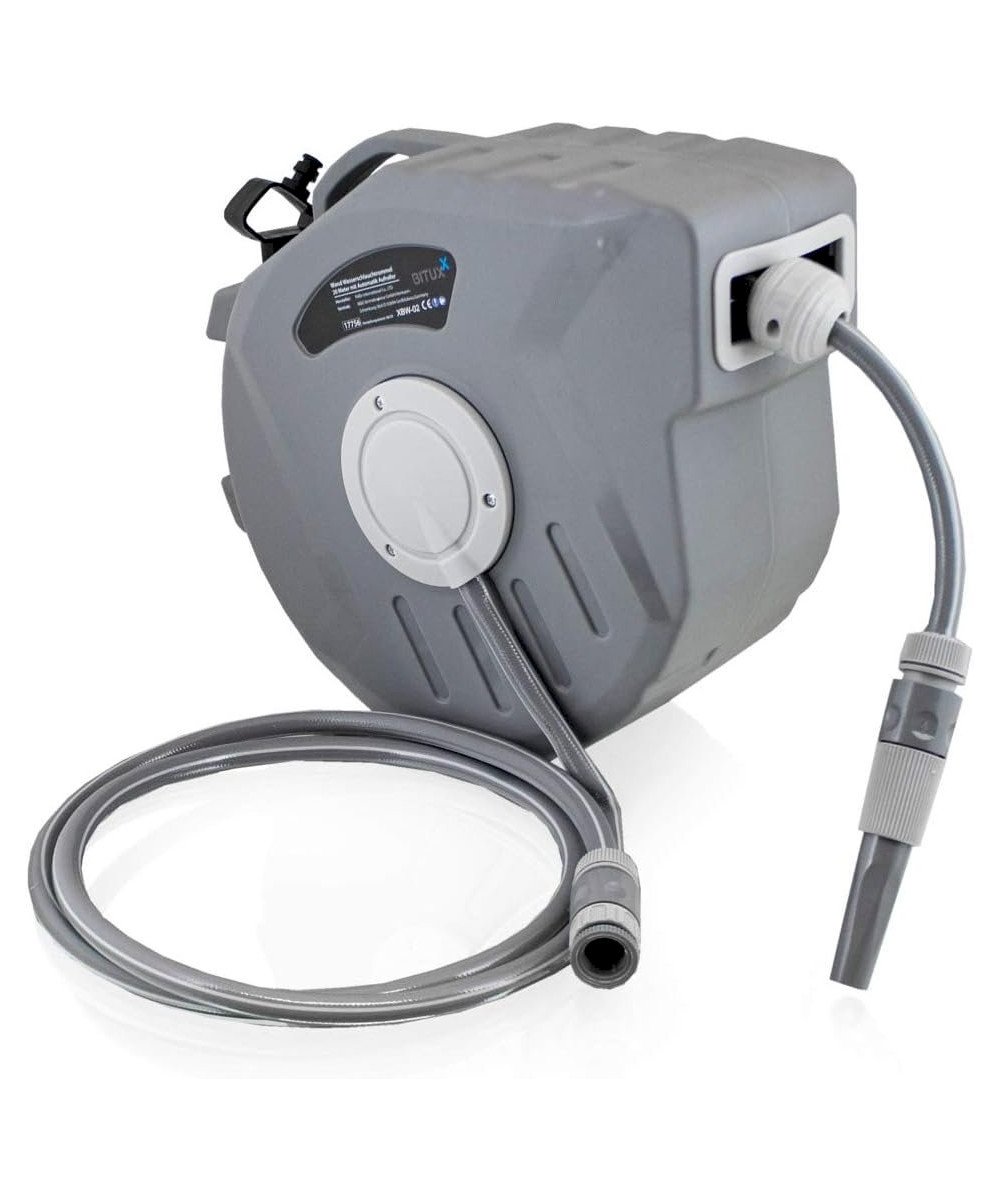 BITUXX Wasser Schlauchtrommel 20m inkl. Schlauchspritze zur Garten Bewässerung Grau