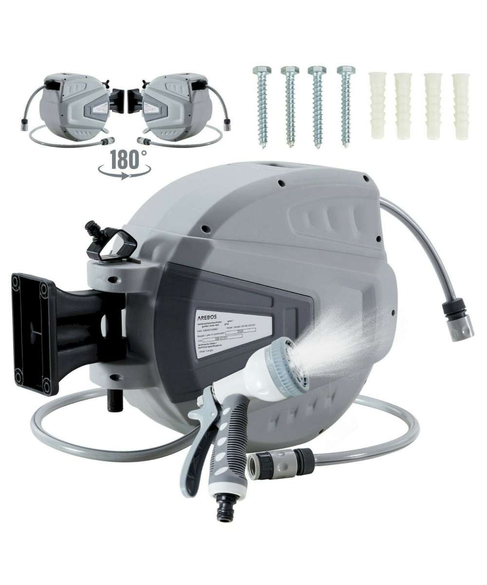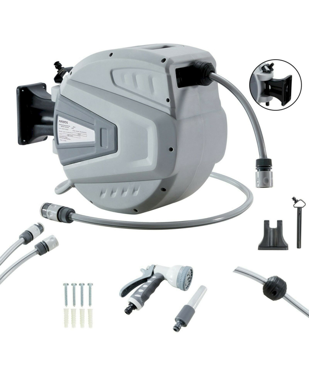 AREBOS Gartenschlauchaufroller Gartenschlauch Wasserschlauch Schlauch Grau 30 m