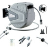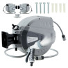 Die Schlauchtrommel verfügt über einen automatischen Aufrollmechanismus mit integrierten Stoppmechanismus, somit kann der Schlauch leicht aufgerollt werden und bei beliebiger Länge einrasten.