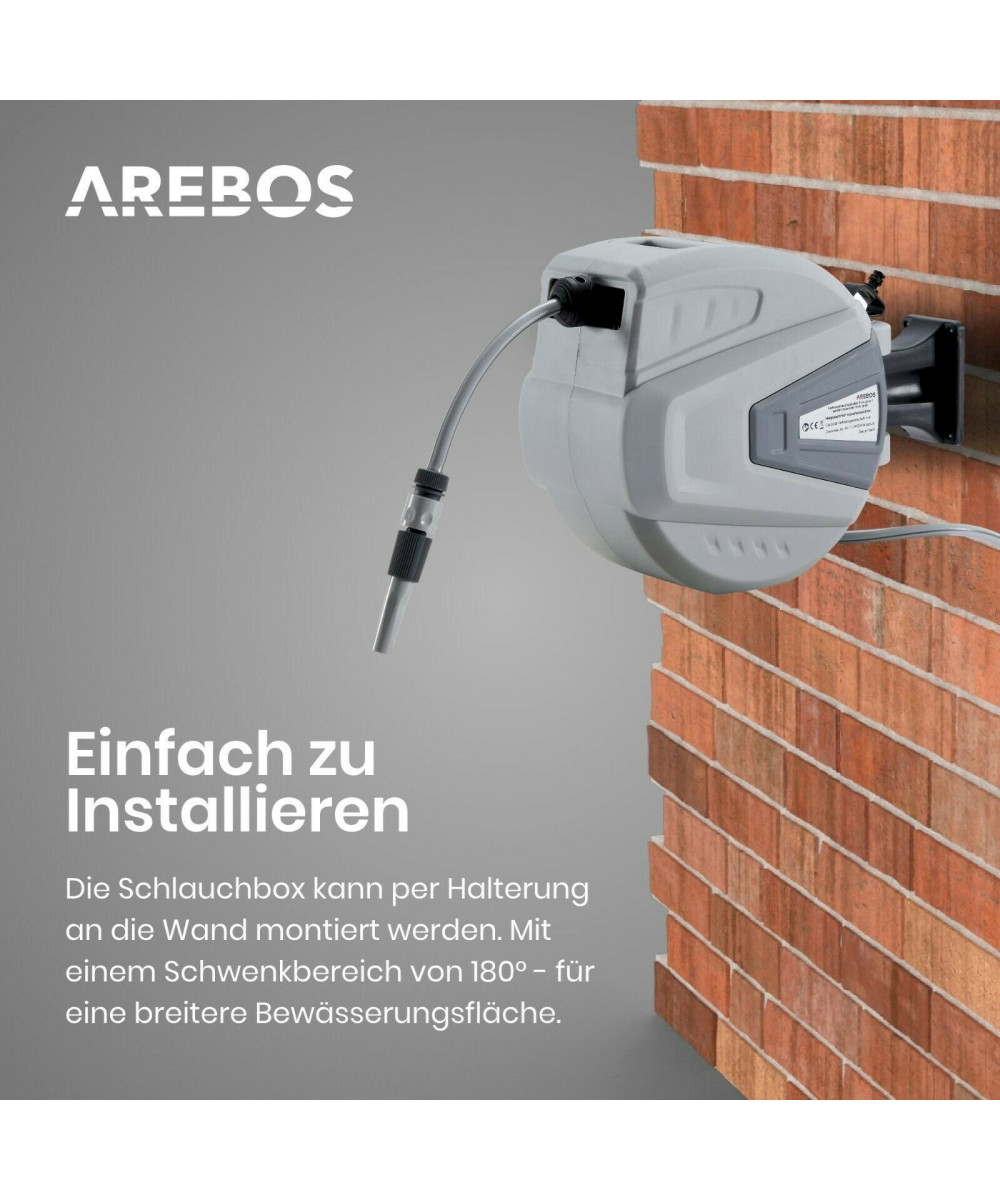 Mit dem praktischen AREBOS Aufbewahrungssystem gehören die gefährlichen Stolperfallen und unaufgeräumte Schläuche jetzt der Geschichte an. Dank der Schlauchbox lassen sich die Schläuche elegant verstauen und bei Bedarf schnell wieder hervorholen. Es ist die ideale Lösung, um Ihren Garten auf einfache und mühelose Weise zu pflegen.