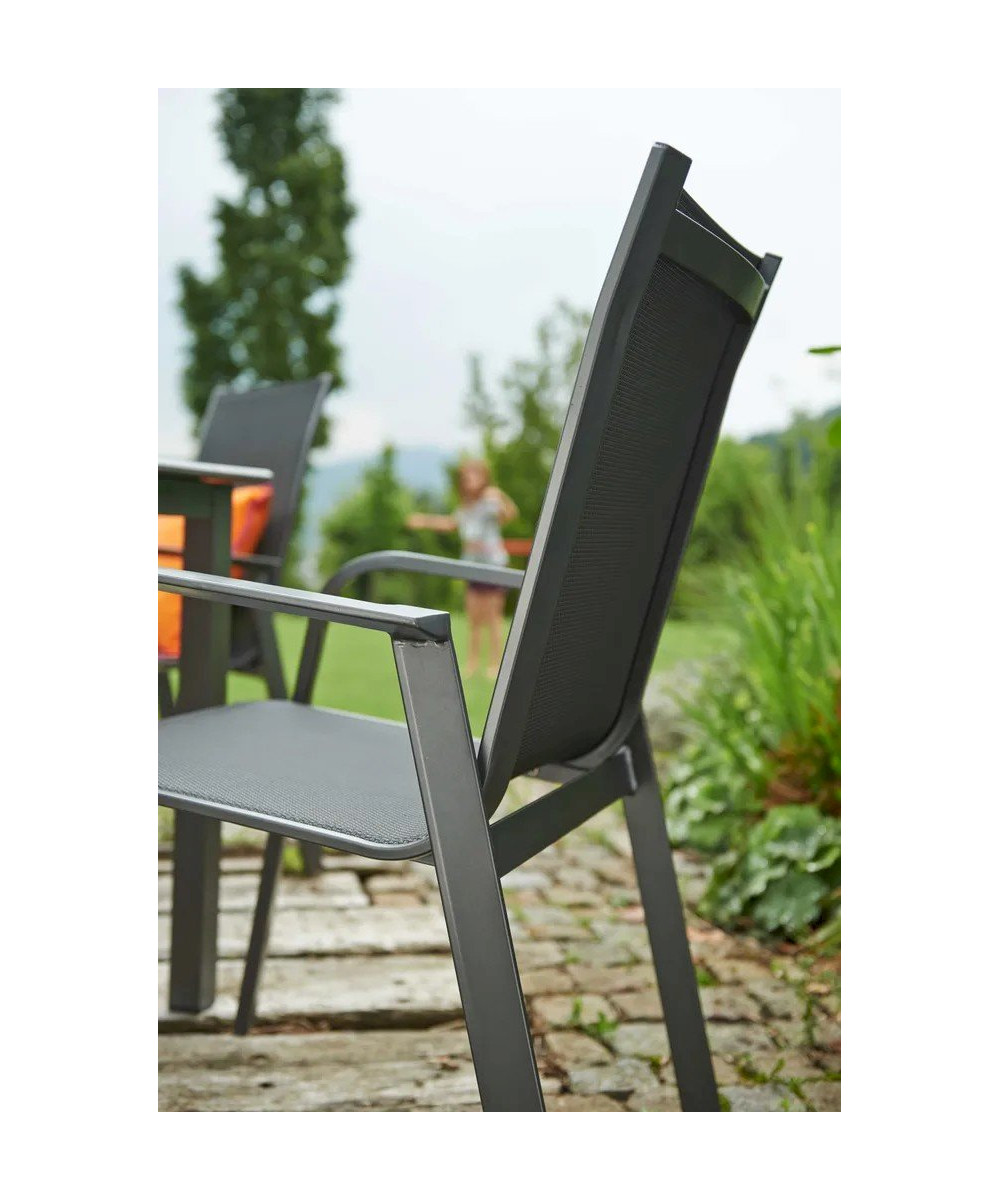 Der Stapelsessel urban bietet eine hohe Materialqualität und Outdoor-Tauglichkeit. Mit seinem filigranen und gleichzeitig modernen Design und der atmungsaktiven Bespannung fügt er sich elegant in jede Terrassen-Einrichtung ein und verbreitet dort eine elegante Atmosphäre. Die Bespannung besteht aus hochwertigem Acatex-Gewebe, welches schnell trocknend und 100 % witterungsbeständig ist. Das stabile Aluminiumgestell ist wetterfest pulverbeschichtet und macht Ihr neues Gartenmöbelstück gleichzeitig angenehm leicht. Der Stapelsessel ist so stabil, dass er problemlos in der Gastronomie eingesetzt werden kann. Durch die Stapelfähigkeit braucht der Sessel zum Überwintern wenig Platz.