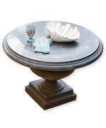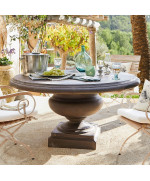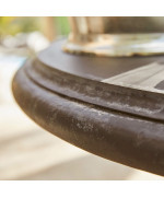 Platte und Fuß sind separat aus einem wetterfesten Natursteingemisch gefertigt, tiefenimprägniert und spezialgehärtet. So entwickelt sich im Laufe der Jahre eine wunderschöne Patina, die von echten historischen Stücken dieser Art kaum zu unterscheiden ist.