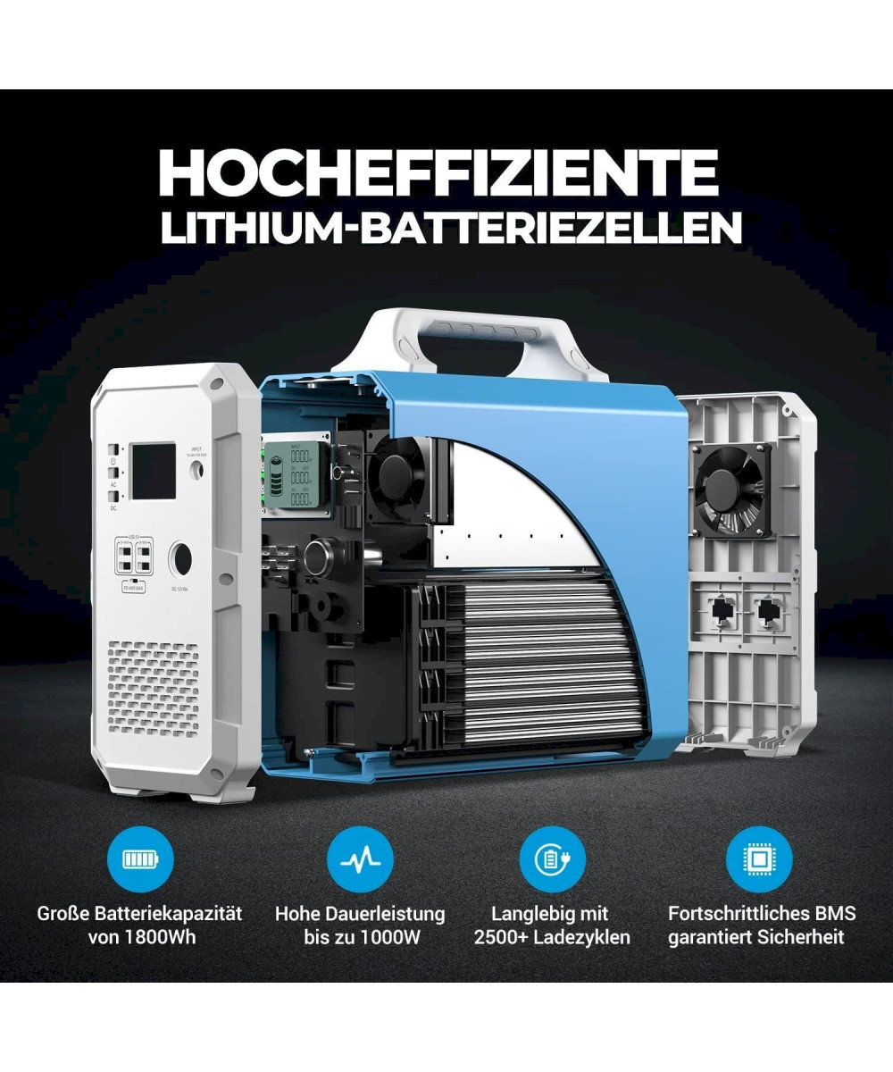Poweroak EB180 ist ein Solargenerator mit einer Kapazität von 1800wh und einer Leistung von 1000W. Es ist auf die Notstromversorgung im Falle eines Stromausfalls anwendbar. Es kann auch als kleiner Helfer verwendet werden, um Ihnen leicht zu helfen, das Problem der Energieknappheit zu lösen