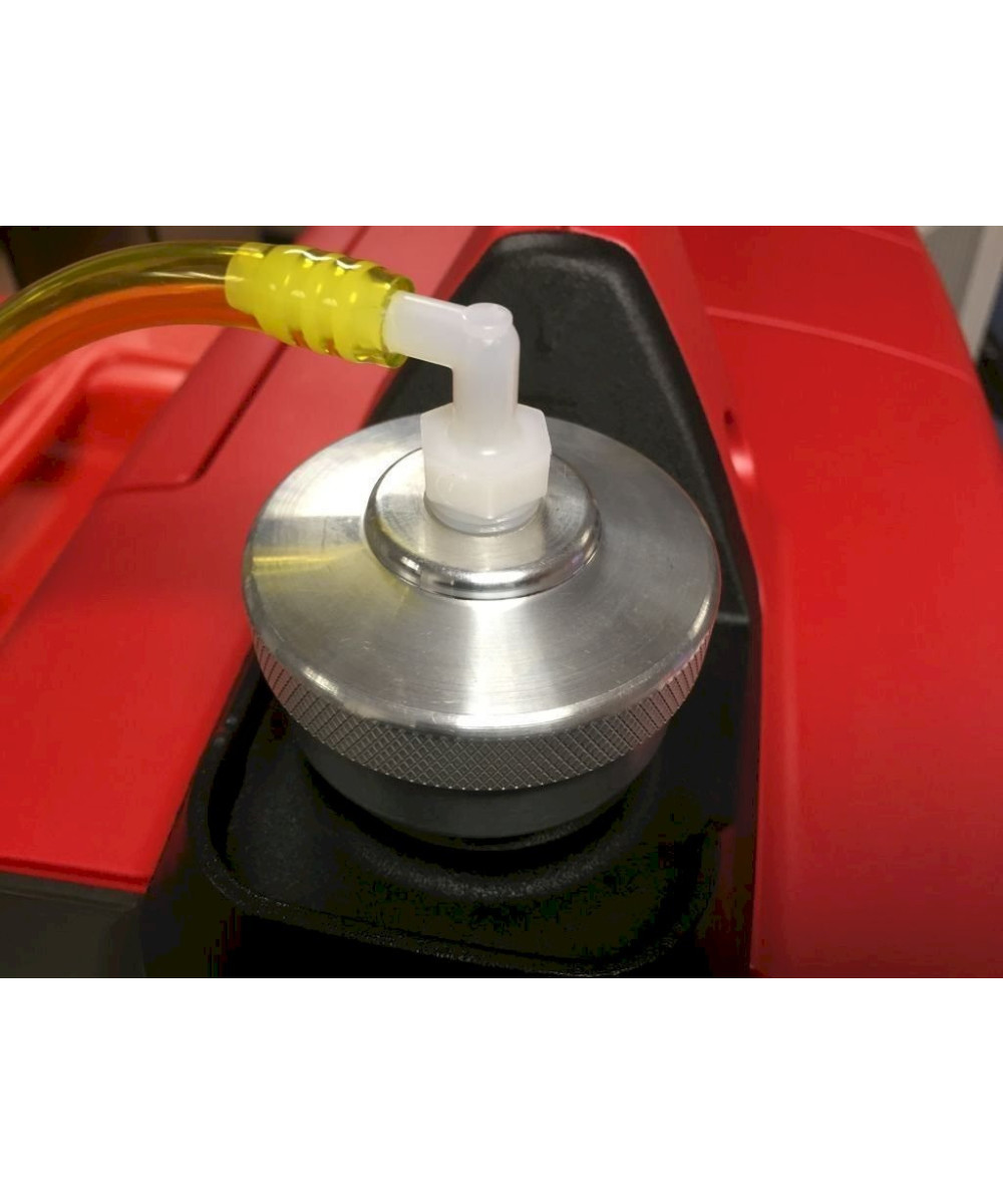 Es muss nur der Innentank des Generators mindestens 3/4 Voll sein ,dann kann man mit einem Schnellverschluß den Tank mit dem Alu Benzintank deckel anbringen und den Generator um ein vielfaches laufen lassen ohne nachzufüllen.