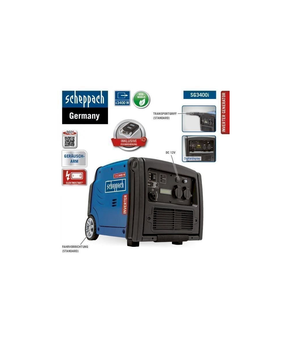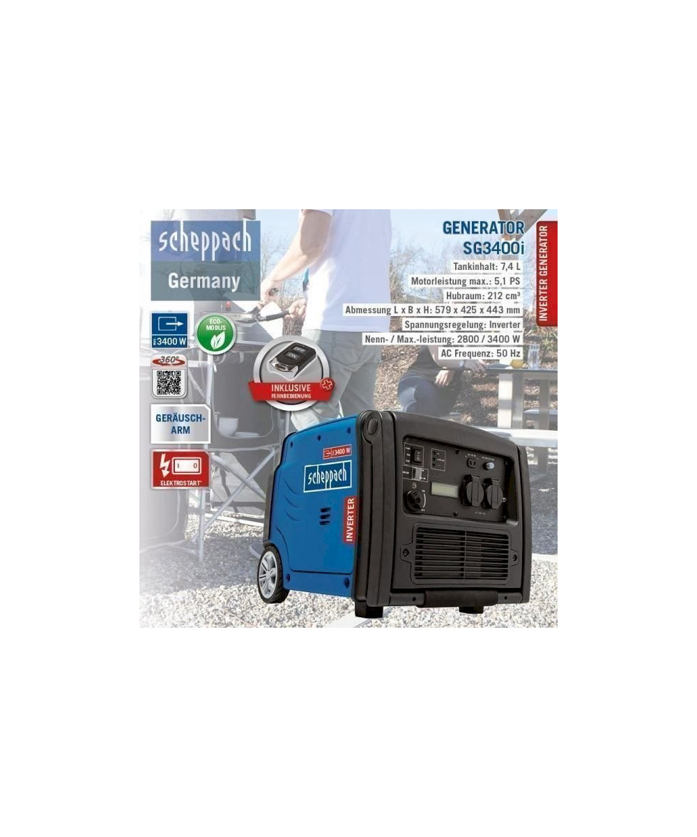 Scheppach Inverter Stromerzeuger SG3400i 3400 W 4-Takt Benzinmotor Fernsteuerung