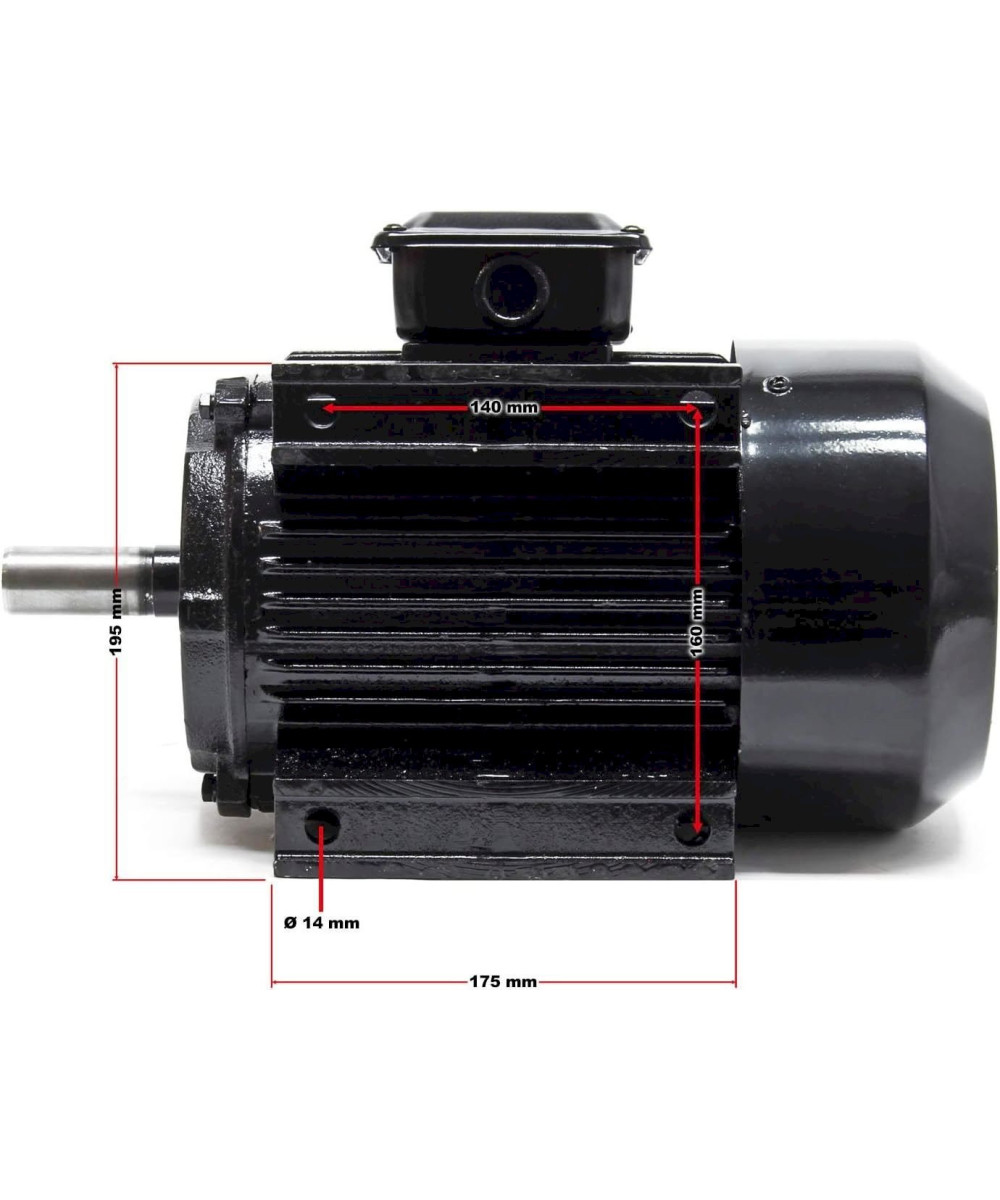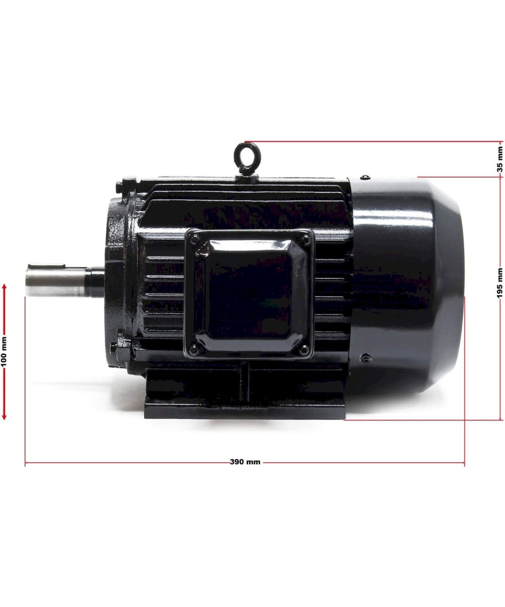 Dieser 3-phasige Elektromotor (Asynchronmotor) in 2-poliger Ausführung entspricht der Normbaugröße und ist daher leicht austauschbar. Mit seinen 3 kW (4 PS) Leistung erreicht der Elektromotor Geschwindigkeiten von 2840 Umdrehungen pro Minute. Die Wicklung besteht aus Aluminium.