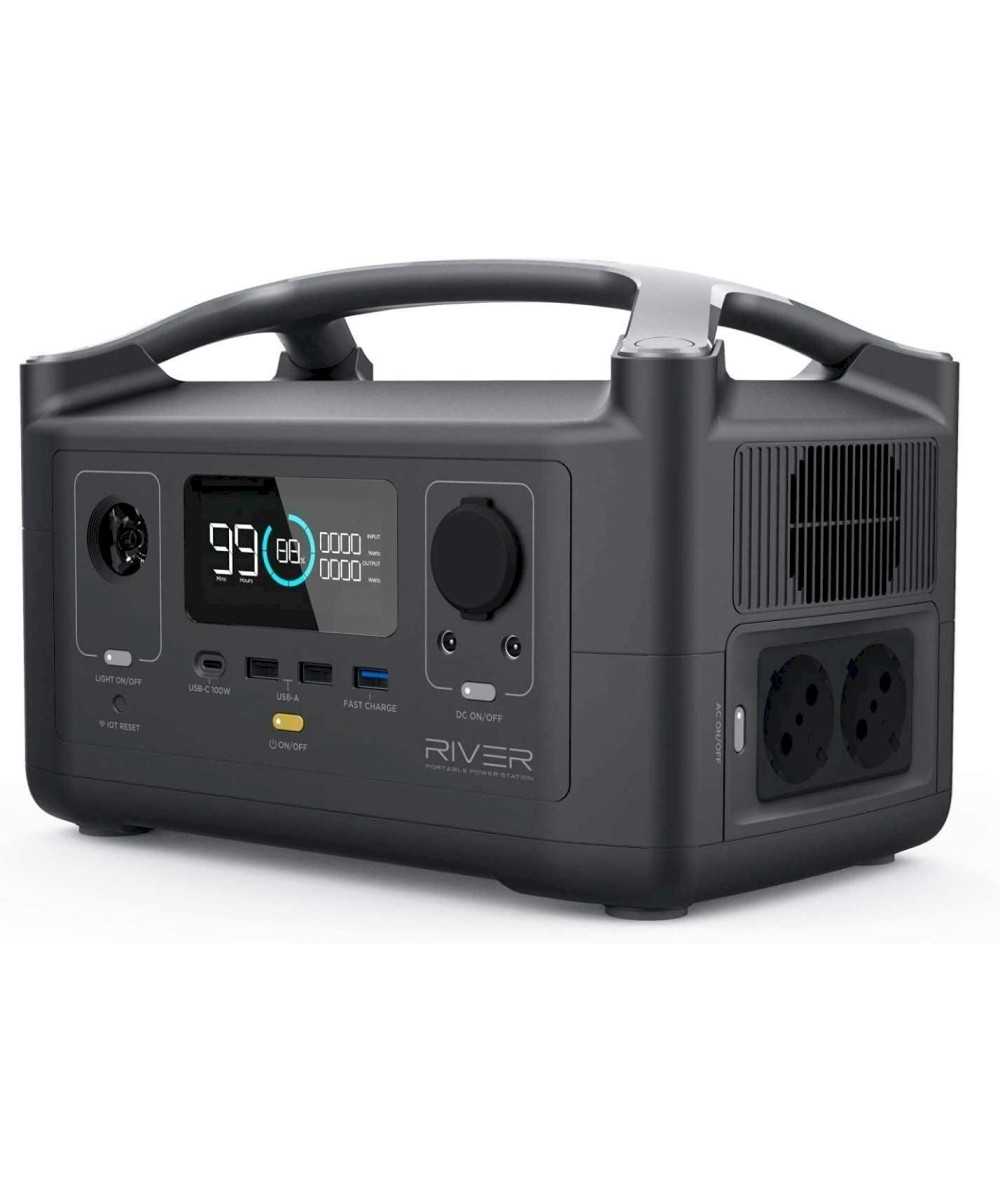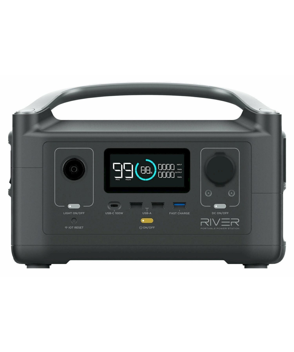 Die EcoFlow River Powerstation versorgt Sie überall mit Strom. Das Gerät verfügt über einenTragegriff für einen komfortablen Transport.