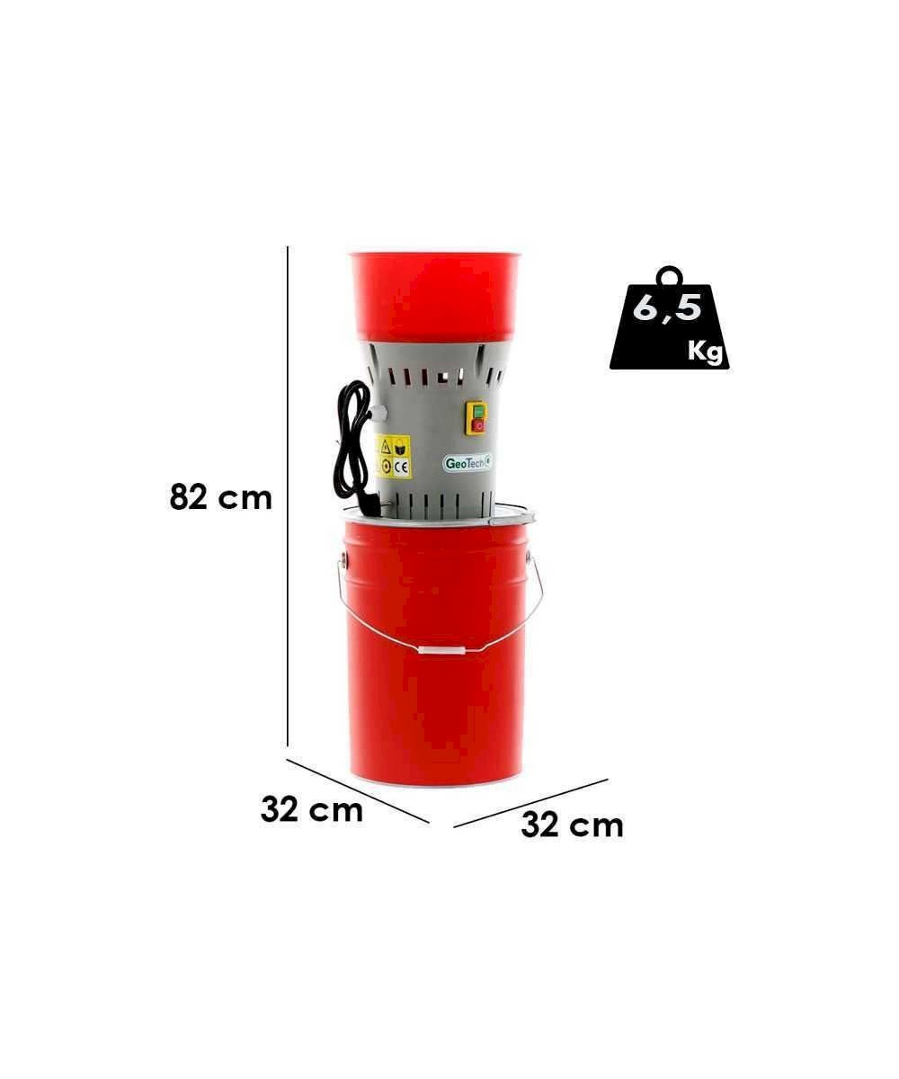 Die Elektro-Getreidemühle GeoTech GEOMILL-25 mit Kornbehälter ist mit einem 1000 W (1,34 PS) Einphasen-Elektromotor ausgestattet.