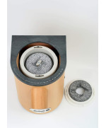 Die Mahlwerke aus Korund-Keramik werden von einem Motor 600W angetrieben. Auf dem unteren rotierenden Mahlwerk steht eine integrierte Bürste, die bei jeder Rotation das Mehl entfernt, deswegen wird die Mühle automatisch gerenigt.