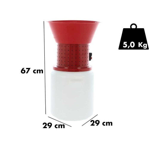 Dieses Produkt lässt sich leicht zerlegen, es ermöglicht eine relativ hohe Produktion von gemahlenem Korn im Verhältnis zu seiner geringen Größe. Dank der besonderen Sorgfalt bei seiner Konstruktion ist diese Elektromühle in der Lage, Getreide zu mahlen, ohne dass Staub in die Umgebung abgegeben wird. Der Behälter hat ein Fassungsvermögen von 20 lt.