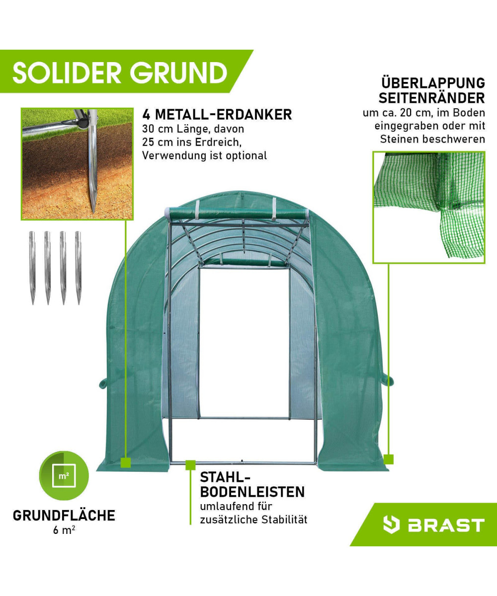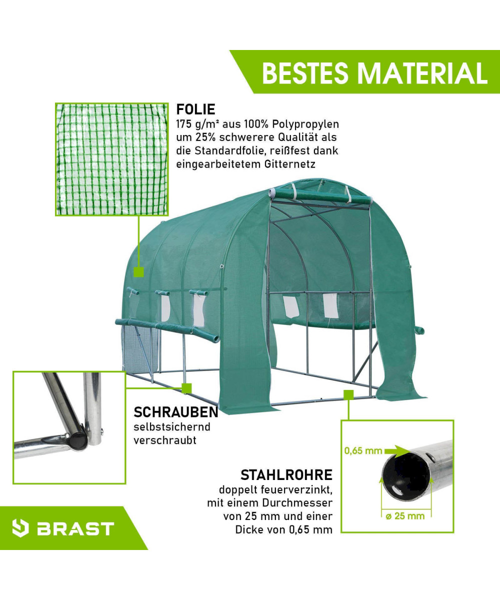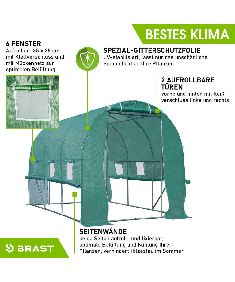 - Dieses BRAST Tunnel Gewächshaus hat 2 aufrollbare Türen vorne und hinten mit Reißverschluss links und rechts.